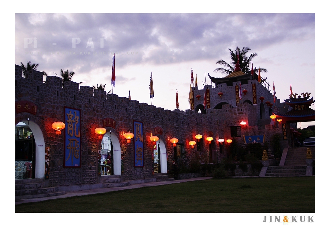 พอออกมานอกเมืองปายเราก็จะมาเจอบ้านจีนยูนาน ที่มีปติมากรรมกำแพงเมืองจีนจำลองอยู่ที่นี่