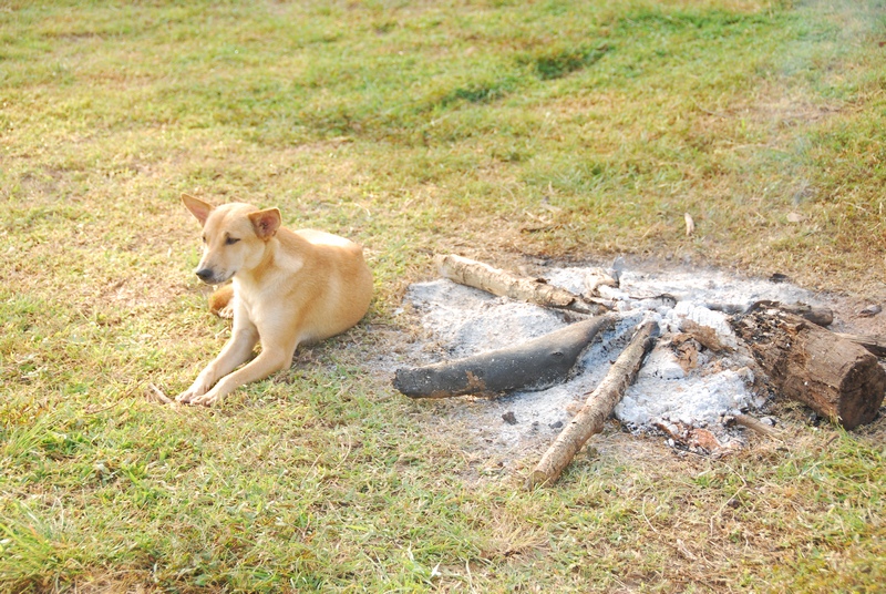 ยามเช้าอากาศเย็น ขนาดหมายังมาผิงไฟเลยครับ
