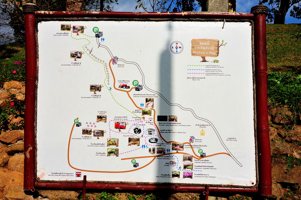 แผนที่ของสถานที่และจุดที่น่าสนใจ หากคนชอบต้นไม้และดอกไม้ ผมว่าเดินกันเพลินเลยครับ (แต่ดูๆแล้วเล็กกว่าที่โครงการหลวงเกษตร ที่ดอยอ่างขาง นะครับ)