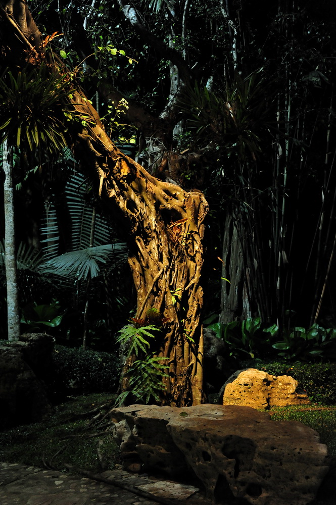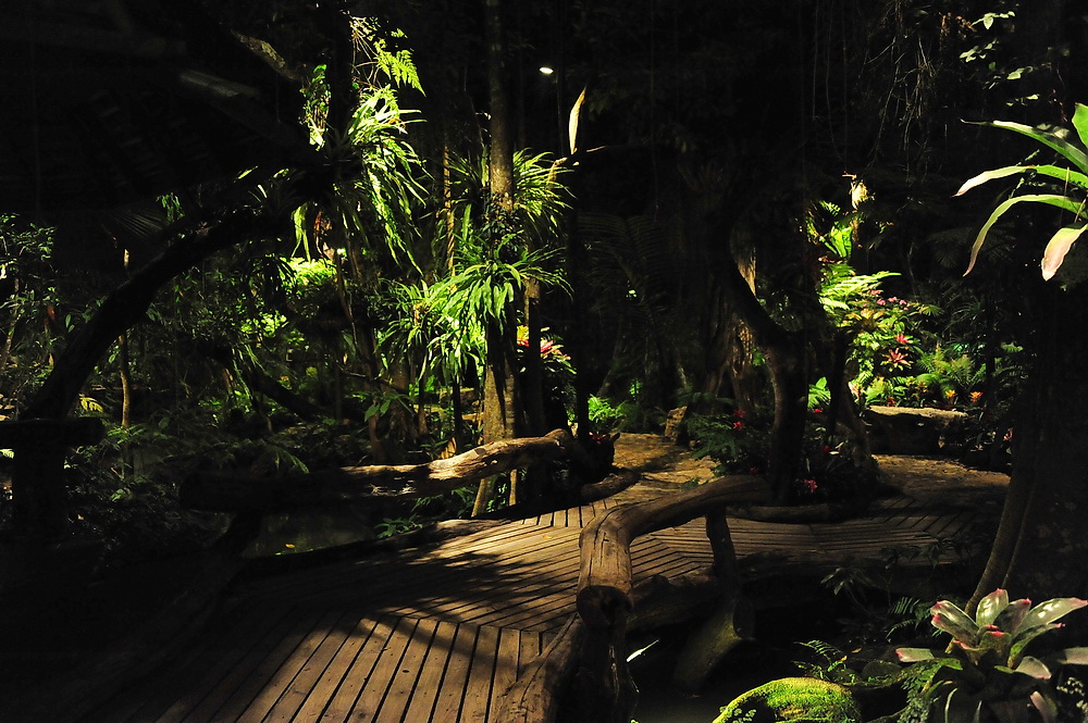 บรรยากาศในร้าน สวยมากมีธารน้ำตกไหล ต้นไม้หลากหลายชนิด การจัดแสงไฟทำให้ดูดีขึ้น