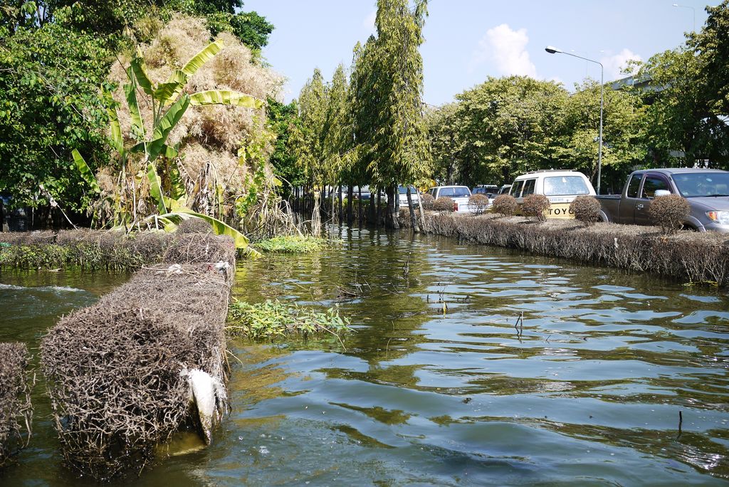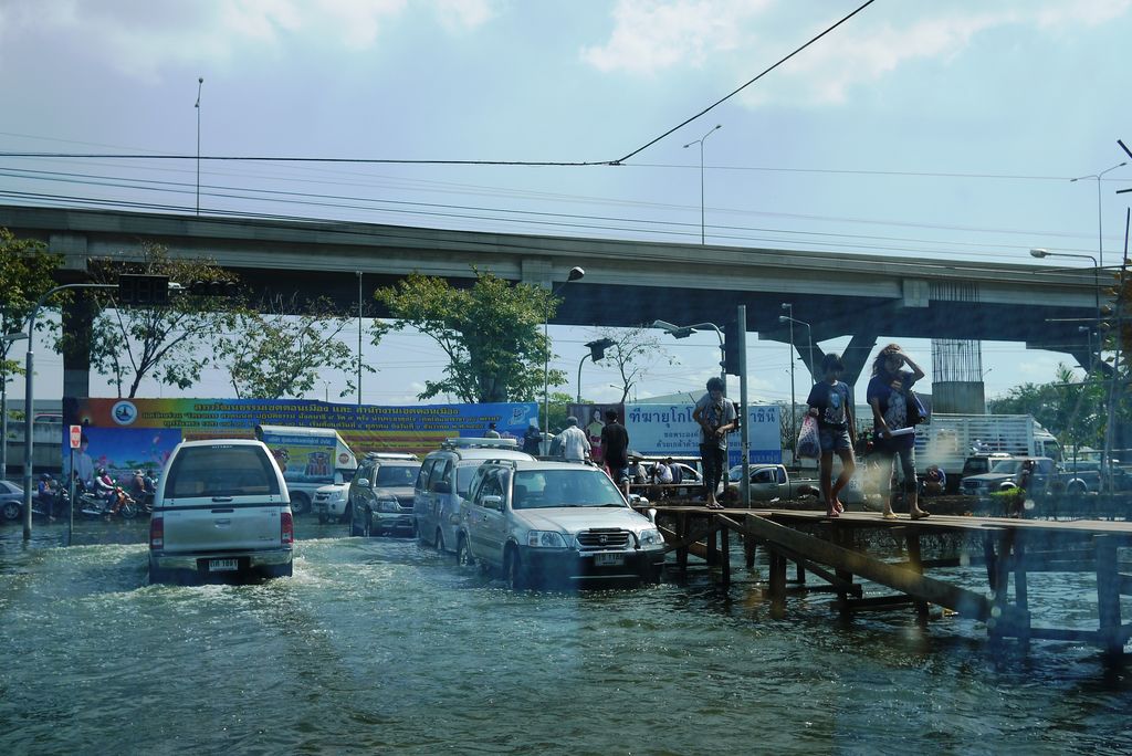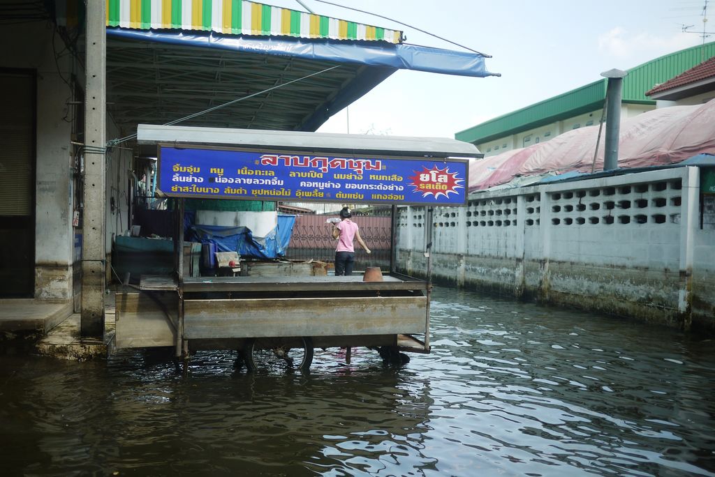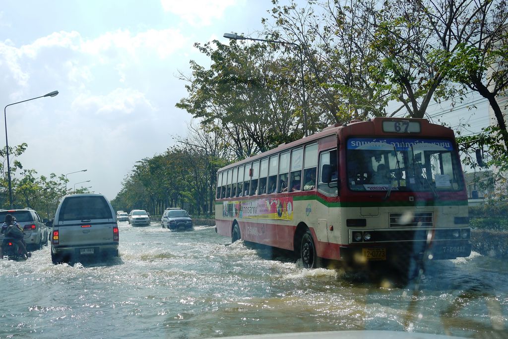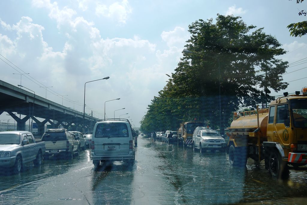 โชคดีพื้นตรงที่จอดรถด้านล่างคอนโดน้ำลดแล้ว เหลือแต่ตรงถนนระดับน้ำเกือบเข่า น้องที่ติดรถมาด้วยกันต้องลุยน้ำเข้าบ้าน