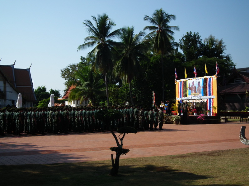 อุ้ย เข้าลานวัดไม่ได้ พอดีเขามีพิธีเปิด Big Cleaning Day ของนักศึกษาวิชาทหาร เราเลยต้องอ้อมๆ