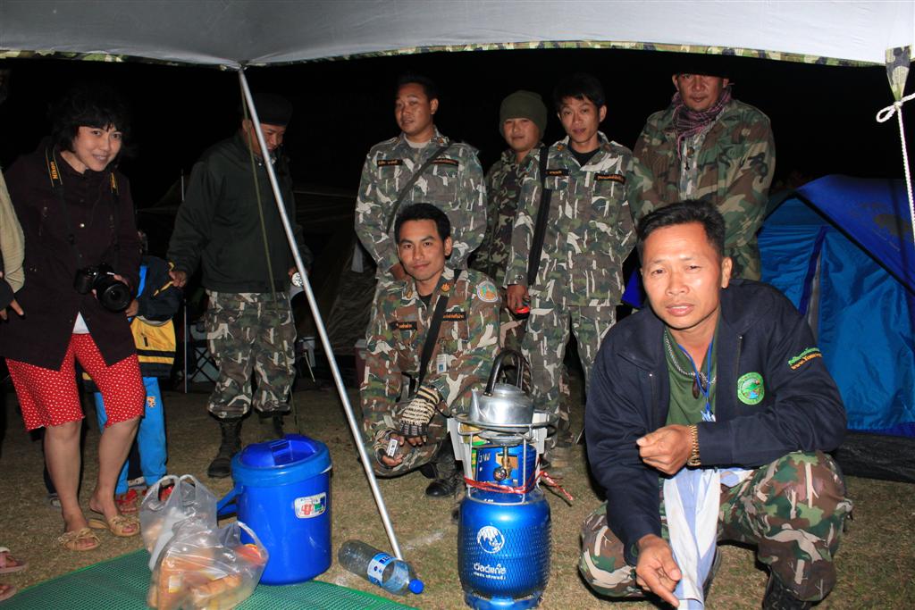 ระหว่างพักผ่อนกันอยู่ ก็มีบรรดาหนุ่มน้อย หนุ่มใหญ่เข้ามาห้อมล้อมที่เต้นท์ของเราซะงั้น (ก็เราน่ะ แพ้คนในเครื่องแบบซะด้วยซิ)