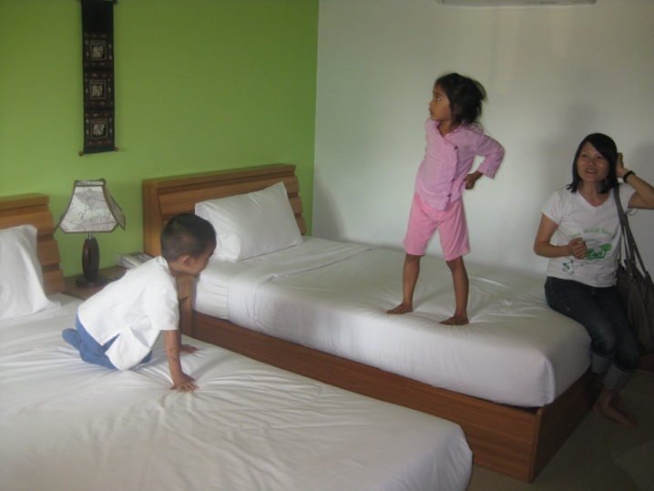 เด็กชอบใจกระโดดกันใหญ่เลย ส่วนผู้ใหญ่ ขอเอนหลังก่อน เดี๋ยวต้องออกไปตำจอกเสียหน่อยแก้หนาว