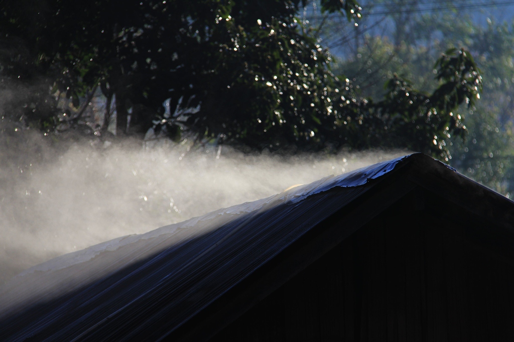 แดดออกน้ำแข็งบนหลังคาเริ่มละลาย