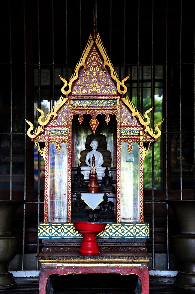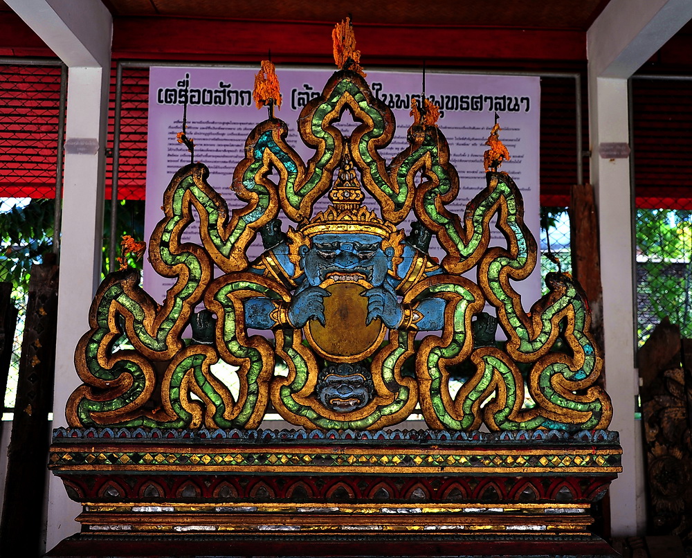 นิยมเป็นลายปูนปั้นที่เห็นส่วนใหญ่ก็จะลายกนก กนกเปลว ลายช่อดอกพุตตาลส่วนด้านบนก็มีช่อฟ้า ใบละกา หางหงส์ นาคสุดุ้ง