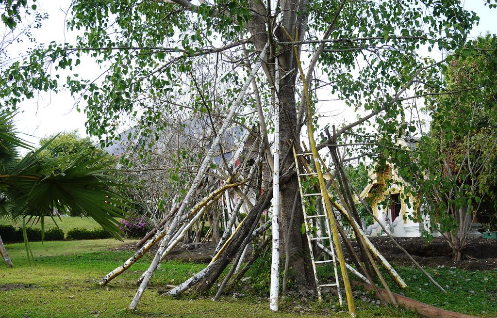 เดินอ้อมไปดูด้านหลัง เมล็ดต้นโพธิ์มาติดตรงหลังหูพอดี กำลังเติบโตออกกิ่งใบ