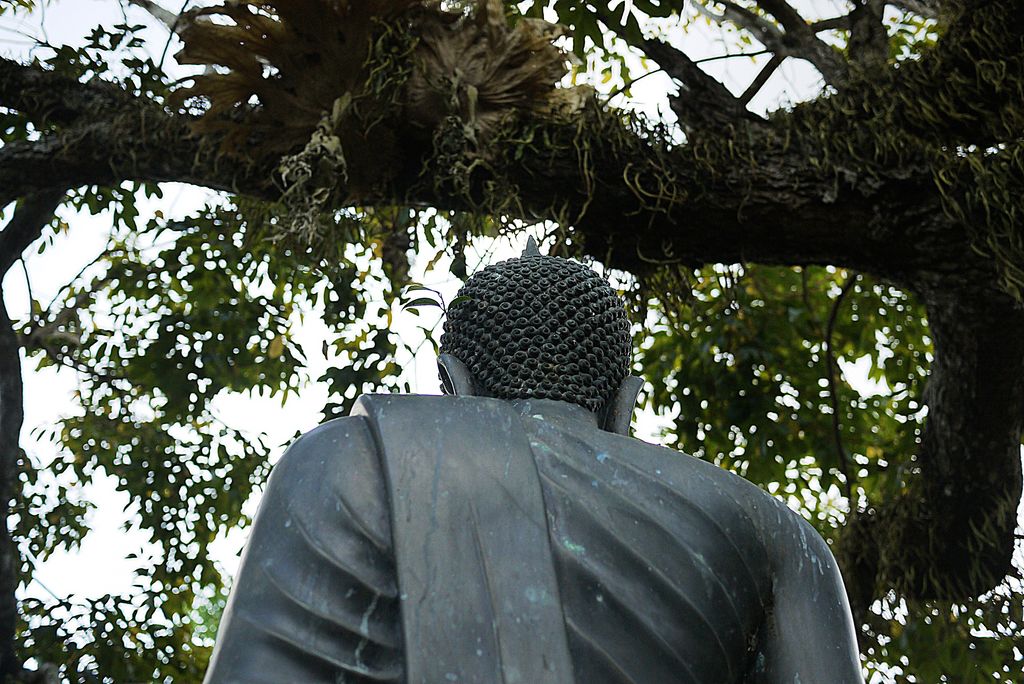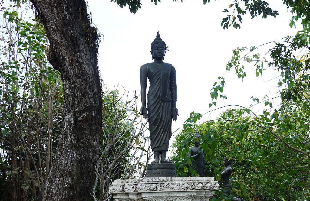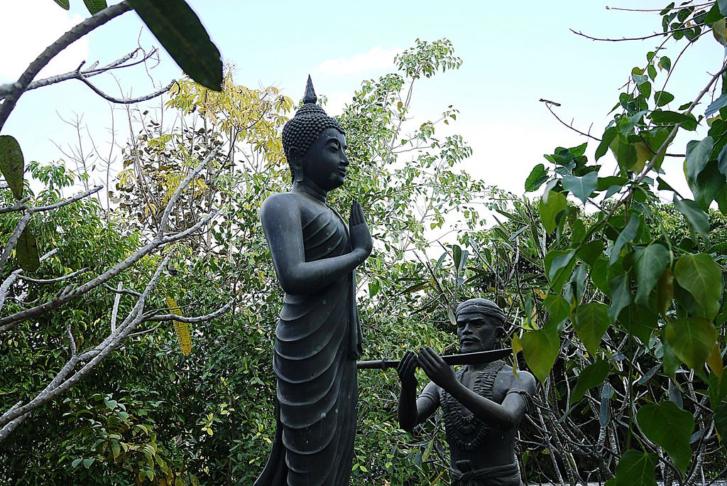 รูปปั้นพระพุทธเจ้างดงาม แต่น่าแปลกใจท่านทัดใบไม้ตรงหูด้วย