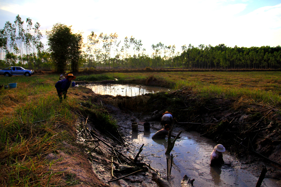 ฉลองปีใหม่แบบบ้านๆด้วยการวิดบ่อจับปลาครับ
