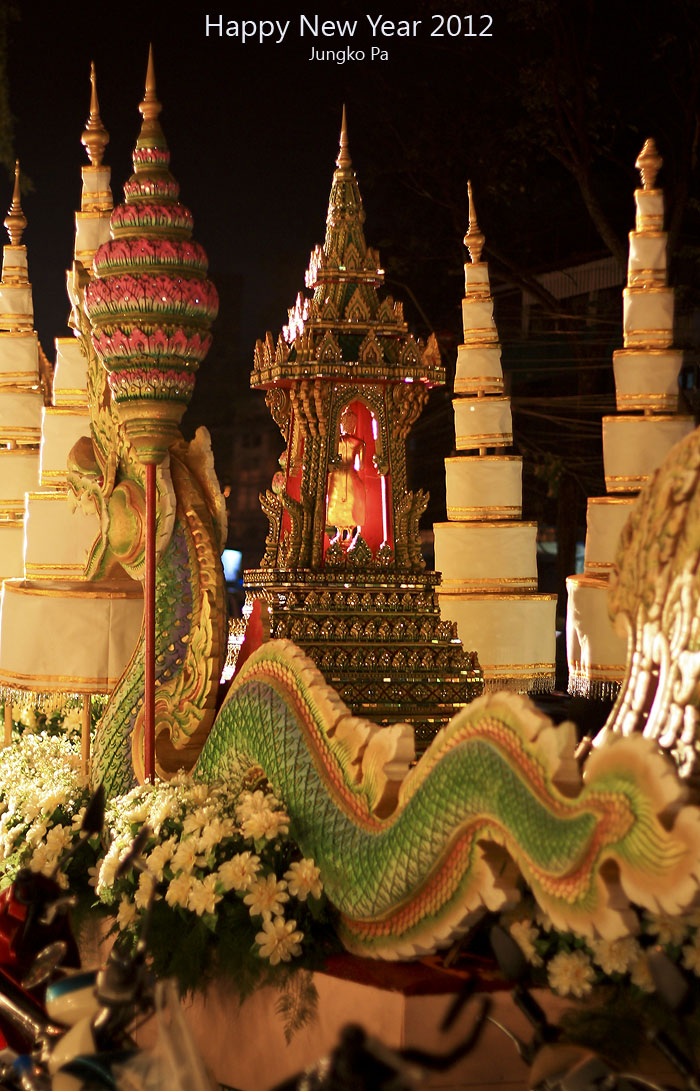 ขบวนรถแห่ของทางวัดที่จะแห่รอบพระอุโบสถในช่วงเวลาวินาทีแรกเริ่มวันใหม่ของปี สวยงามเลยครับ