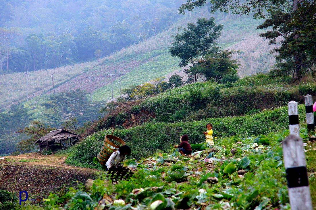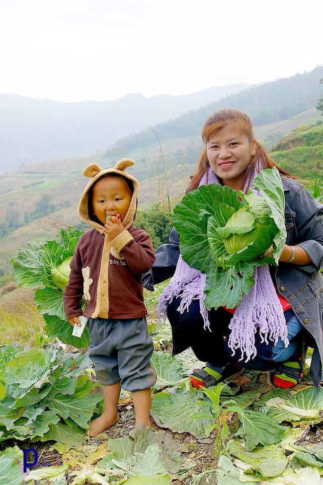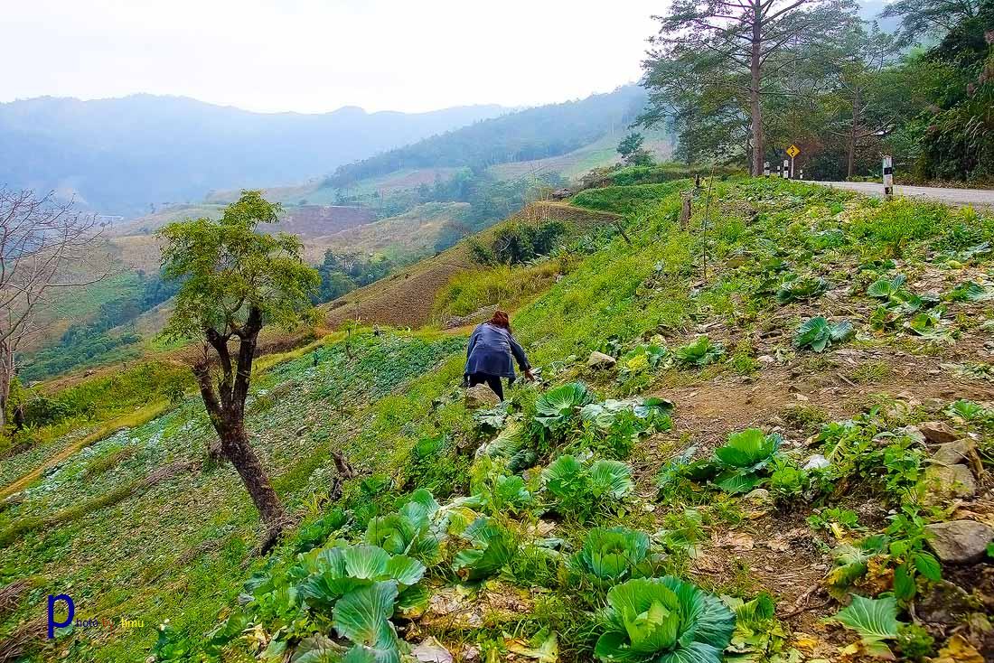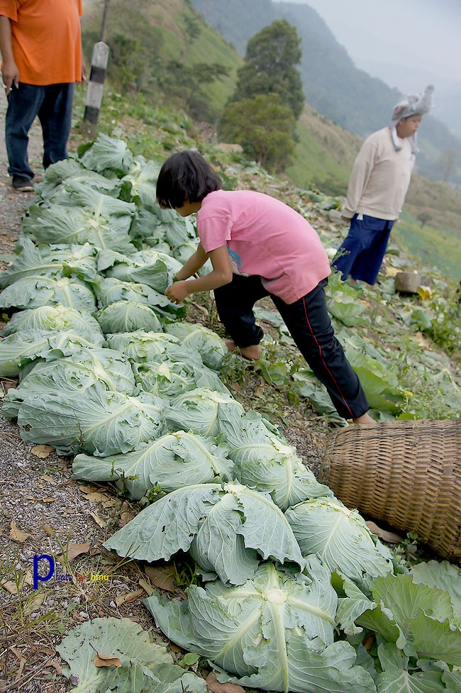 ต้องทยอยขนกะหล่ำ ขึ้นมากองไว้ริมถนนรอรถพ่อค้ามารับ อีกที