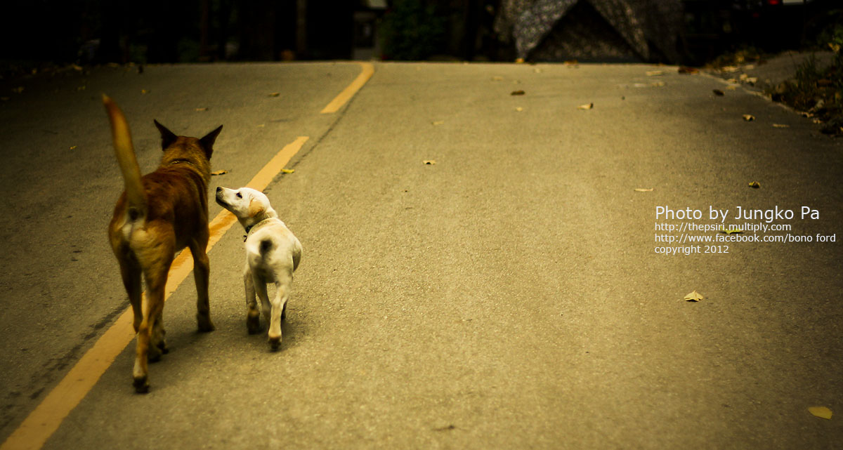 สองตัวนี้แหละที่โดนจาวน้อยแกล้ง ซนเหมือนกันเลย เดินตามพระท่านมาจากวัด