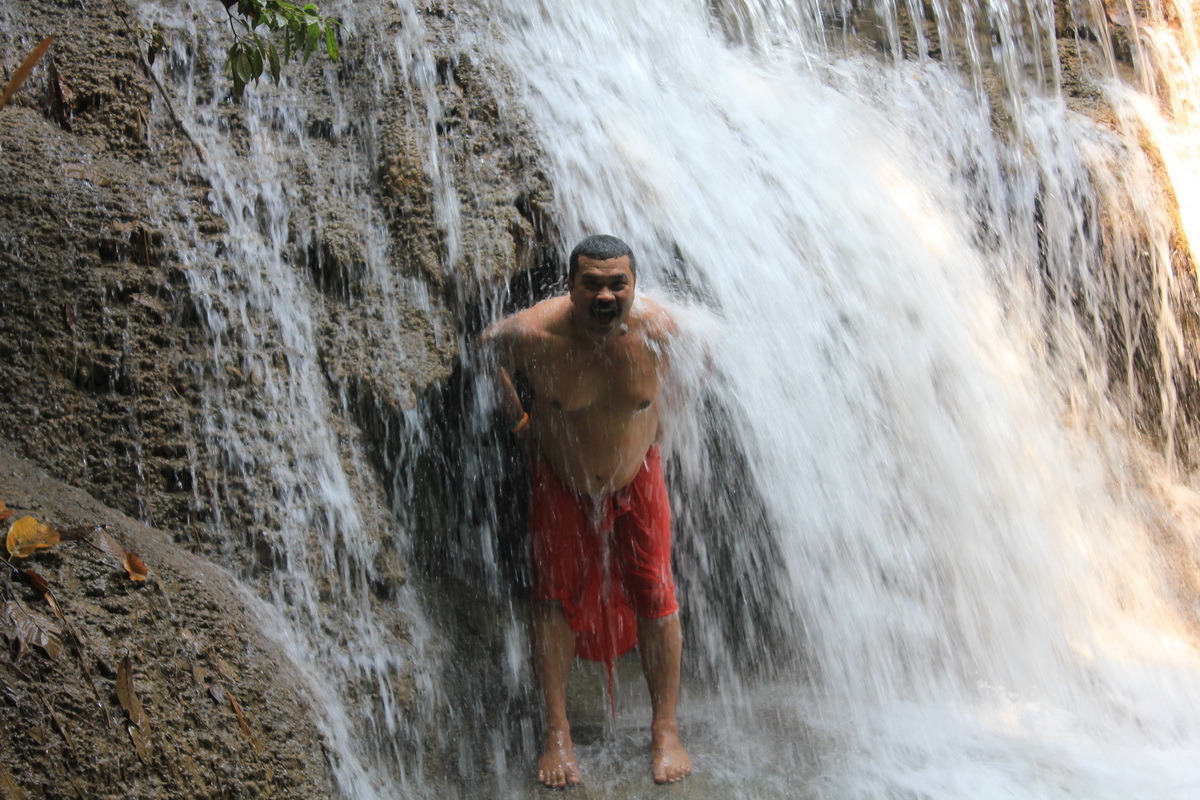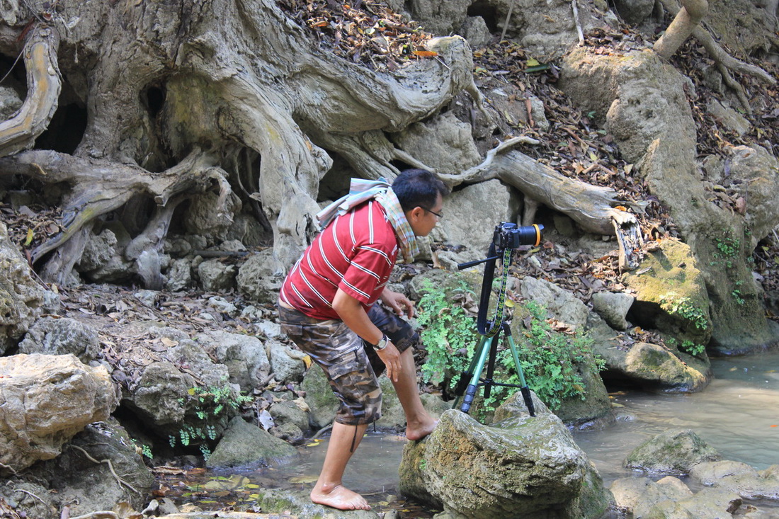 ที่น้ำตกห้วยแม่ขมิ้นครับ จอดชั้น 4 เดินลงมาชั้นสาม ชุดแรกที่มาก่อนยังยึดพื้นที่อยู่เลยครับ