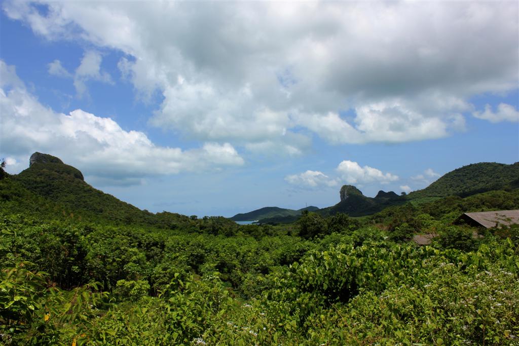 จากท่าเรือเอนกประสงค์ดอนสักแผ่นดินแม่ มองไปทางทิศเหนือ ไกล ๆยอดแหลม ๆน่ะแหละครับเกาะพะลวย และหมู่เกาะอ่างทองถัดไป