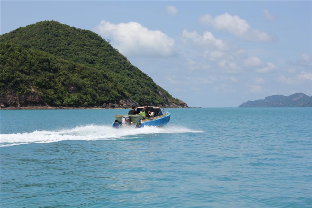 เดินทางกันต่อครับแบบเปิดประทุน ร้อนหน่อย แต่เอาเร็วครับ เนื่องจากคณะยังมีเวลา และคลื่นลมสงบอีกผมก็ตุนน้ำมันมาแล้วเพียบ เลยขอพี่ไปตระเวณหมู่เกาะสักหน่อย ก่อน ๆพี่เขาไปต่อขึ้นเครื่องเลย แต่ตอนหลังใด้บทเรียนพักในตัวเมืองสุราษฎร์อีกคืนค่อยต่อเครื่อง เนื่องจากความไม่แน่นอนและแปรปรวนของทะเลเรื่องคลื่นลม เลยแบบสะบาย ๆไม่ต้องรีบร้อนครับ
