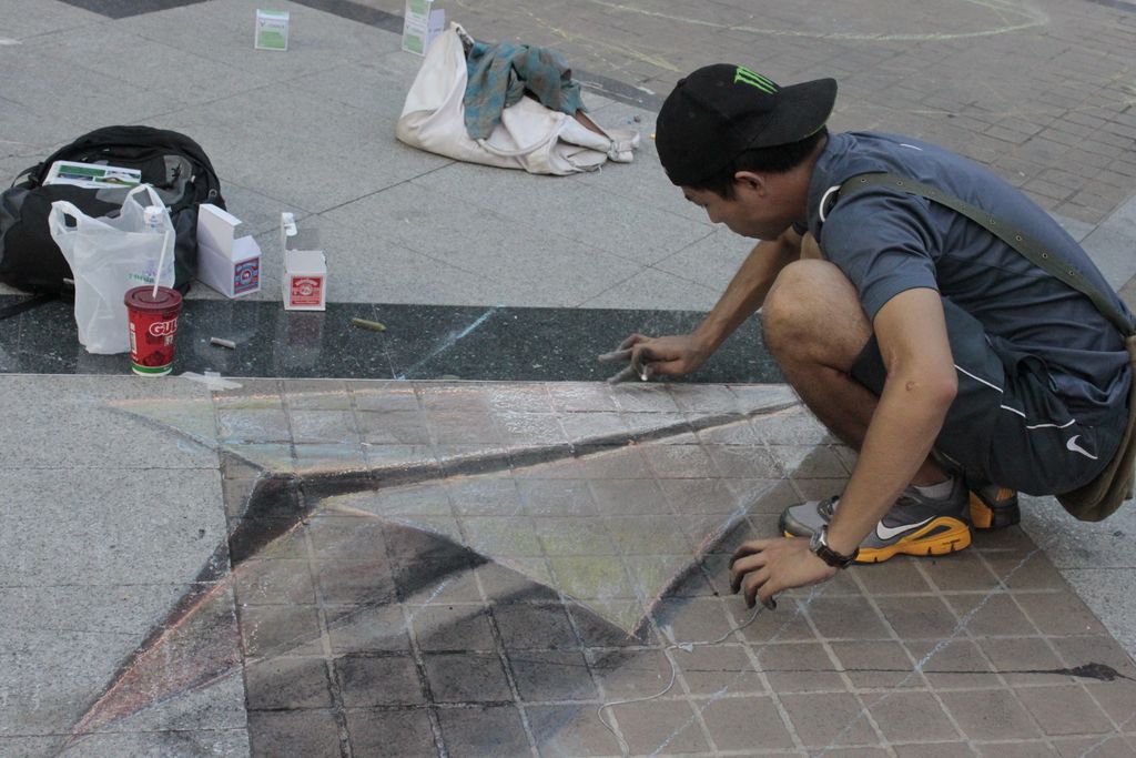 ภาพวาด สามมิติ บนทางเดิน (หน้าอนุสาวรีย์สามกษ์ตริย์) เชียงใหม่