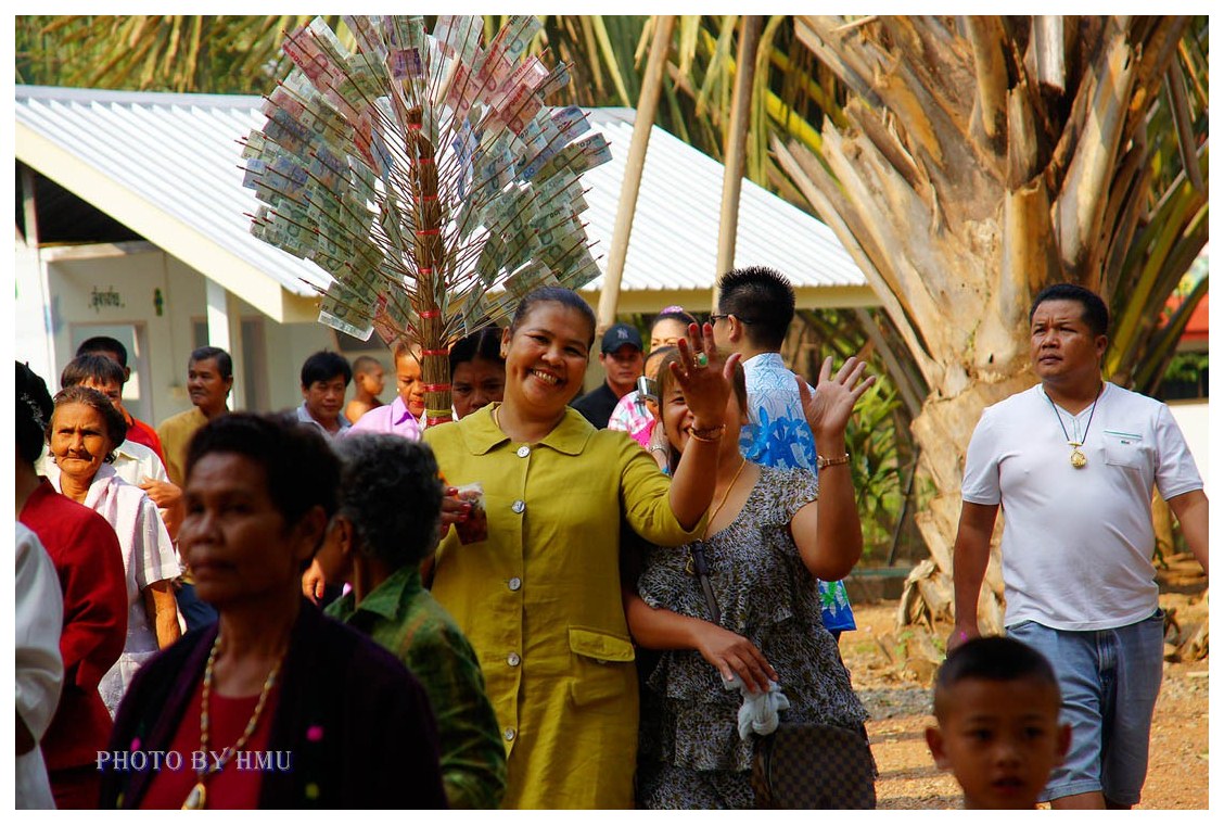 ครบสามรอบ ดึงสายไมค์ขึ้นบนศาลาเตรียมถวายผ้าป่า..