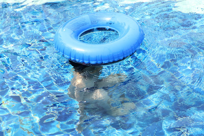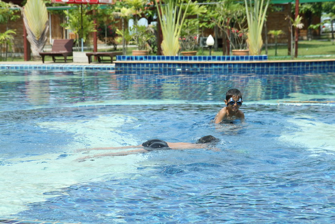 ส่วนคนเล็ก..ดำน้ำ...มุดโพล่ในห่วงยาง....