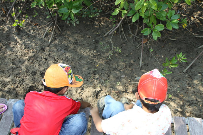 เด็ก ๆ ชอบที่นี่มาก..เพราะป่าชายเลนจะมีปูแยอะ..ปลาตีน บางครั้งเจองูด้วยรวมถึงครั้งนี้...การเดินรอบ ๆ หาดทรายดำ ระยะทาง 1 กิโลพอดี..แต่เราอยู๔่กันเกือบ 1.30 ชม.ได้..เพราะ..เด็ก ๆ ได้เรียนรู้...สิ่งมีชีวิต..กับป่าชายเลน.
