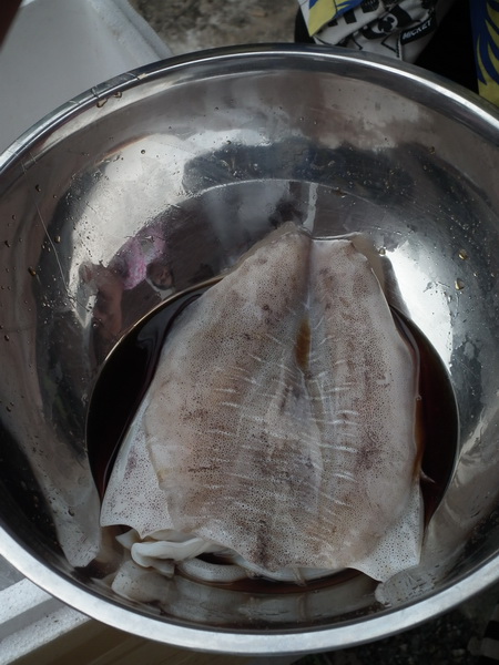 ลงคลุกซอสแล้วครับ พอให้เข้าเนื้อรสของปลาหมึกจะดีขึ้นเยอะ โดยไม่ต้องใช้น้ำจิ้ม ก็ได้เลยครับ