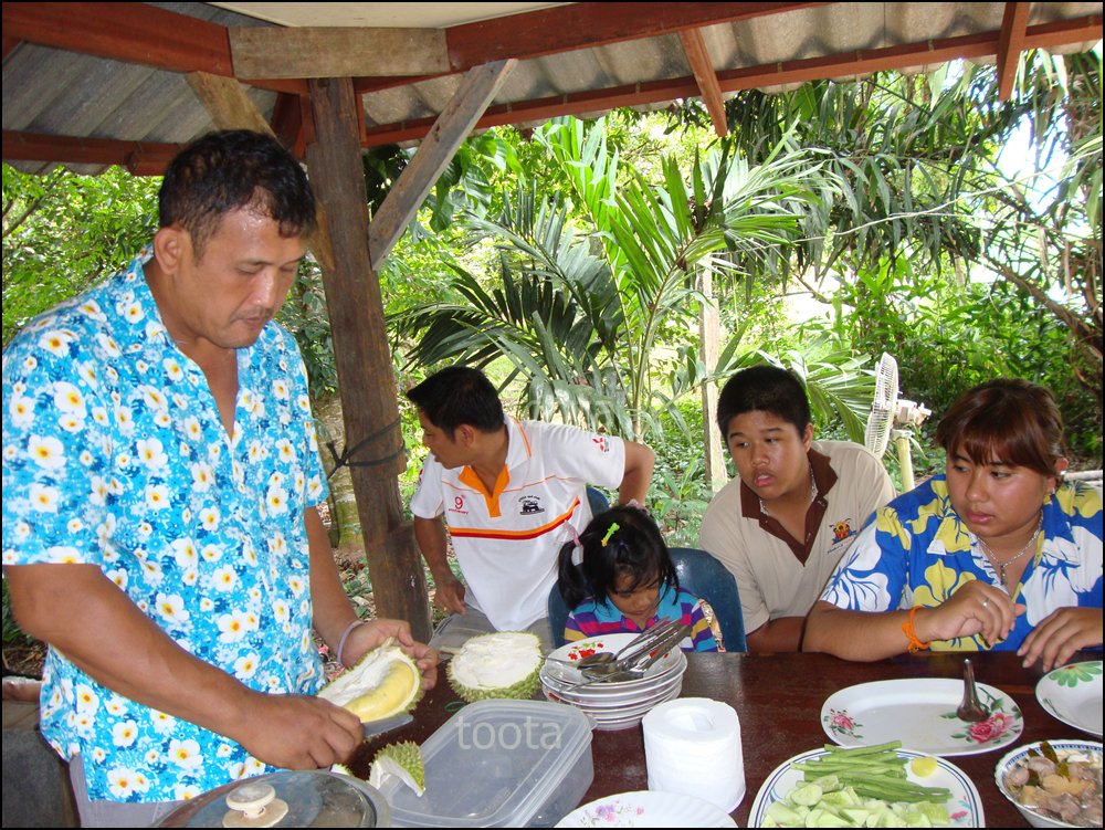 น้านะ กำลังแกะทุเรียน 2 คนนี้จ้องกันตาไม่กระพริบ