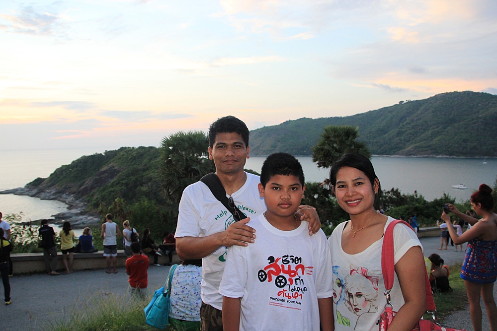 นั่นแน่.....ครอบครัวลุงแมวนั่นเองค่ะ ลุงแมวและครอบครัวน่ารักมาก พอเราจอดรถเค้าก็ออกมาต้อนรับเราเป็นอย่างดี แล้วก็รีบพาครอบครัวนู๋ขับรถ ไปอย่างด่วนเลยค่ะ นั่น คือ แหลมพรมเทพค่ะ เพราะลุงแมวกลัวไปเก็บภาพไม่ทันพระอาทิตย์ตกค่ะ นับถือ นับถือ จริงๆเลยค่ะ เพราะระยะทางก็ไกลพอควรที่สำคัญรถติดยาวมาก ถ้าเป็นพี่โก้ขับไปเองคงถอดใจกลับบ้านแล้วหล่ะค่ะ