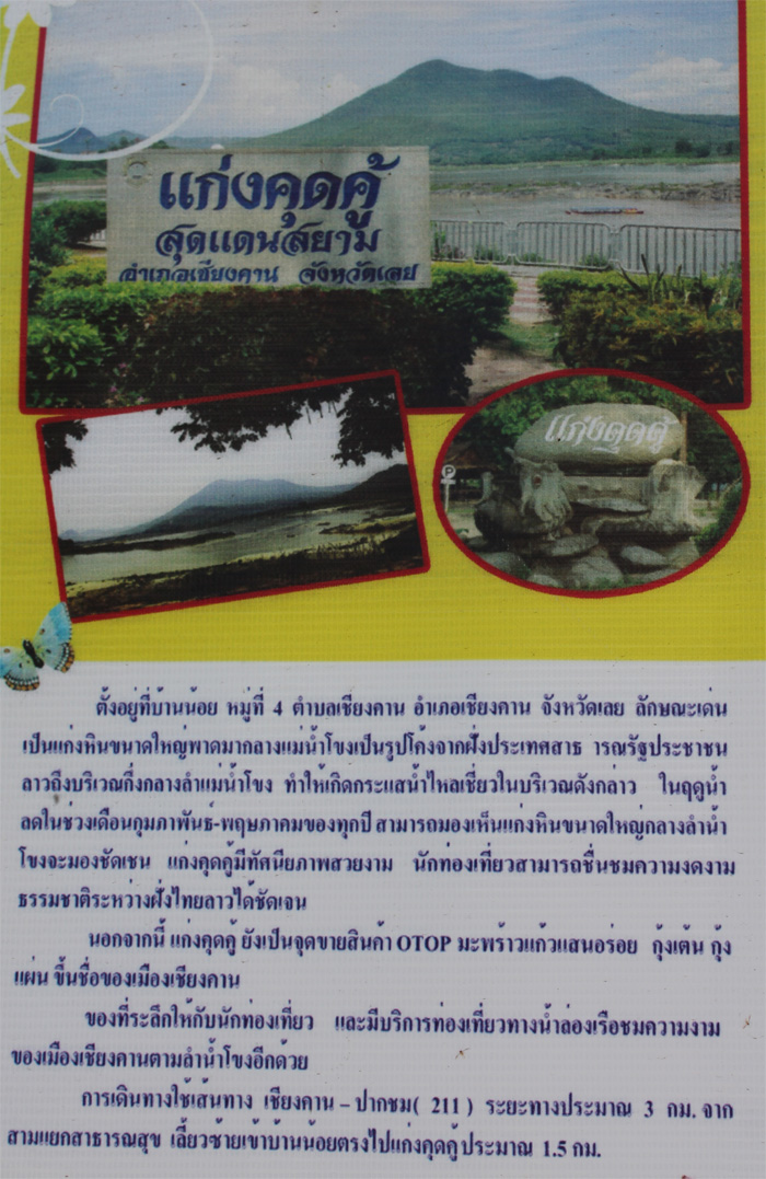ทุกที่ผมว่ามีเสน่ห์ในตัวเอง เมืองเล็กๆ อย่างนี้ ก็มีหลายอย่างให้สัมผัส เมืองริมน้ำ โอบล้อมด้วยอ้อมกอดแห่งขุนเขา และที่สำคัญอยู่ไกล้...เมืองนอกด้วย ผมได้เห็นข้อความที่ติดที่ร้านแห่งหนึ่ง " ฝั่งโน้นไทลาว ฝั่งนี้ไทเลย" สัมผัสใกล้ชิด รูปด้านล่างนี้ ขอออกนอกเส้นทางนิดนึงนะครับ ไปล่องแพ กินปลาที่อ่างเก็บน้ำห้วยน้ำหมาน เลยมาครับ