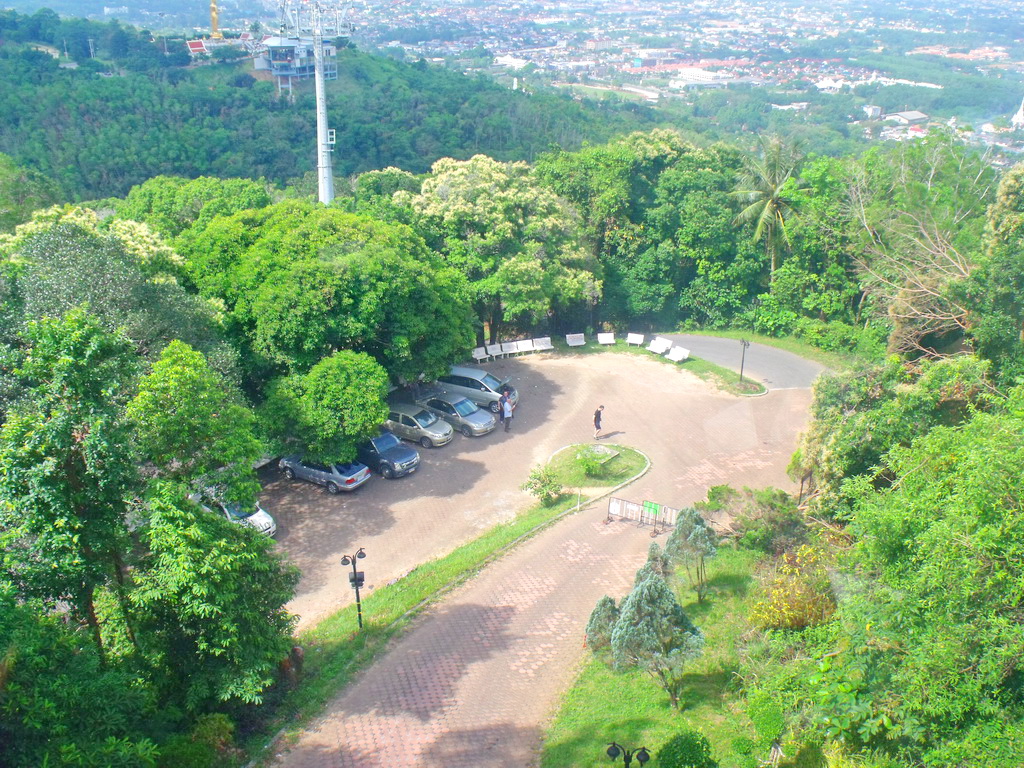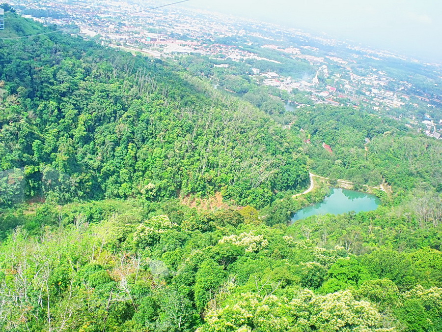 ส่องลงไปด้านล่าง กระเช้า อยู่สูงกว่ายอดไม้พอสมควร