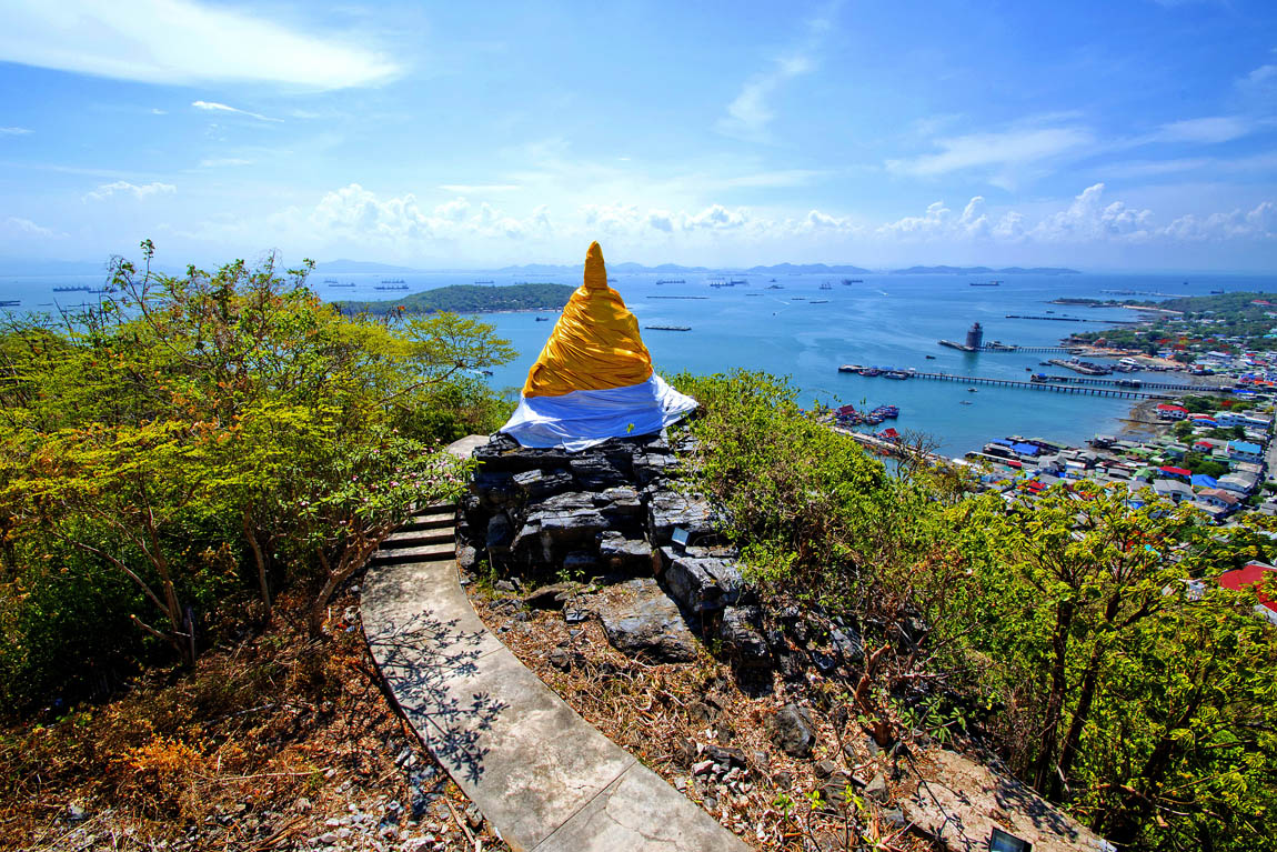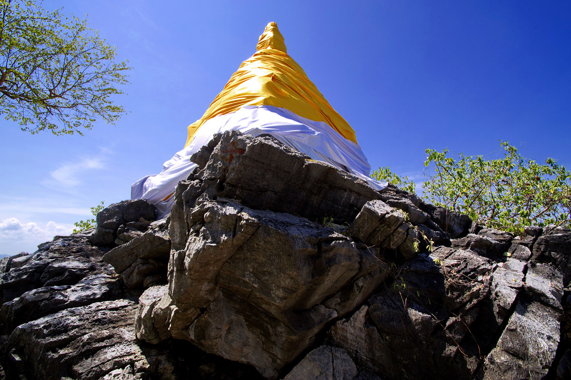 เวลานั่งเรือมาก็จะเห็นเจดีย์นี้อยู่บนยอดเขา