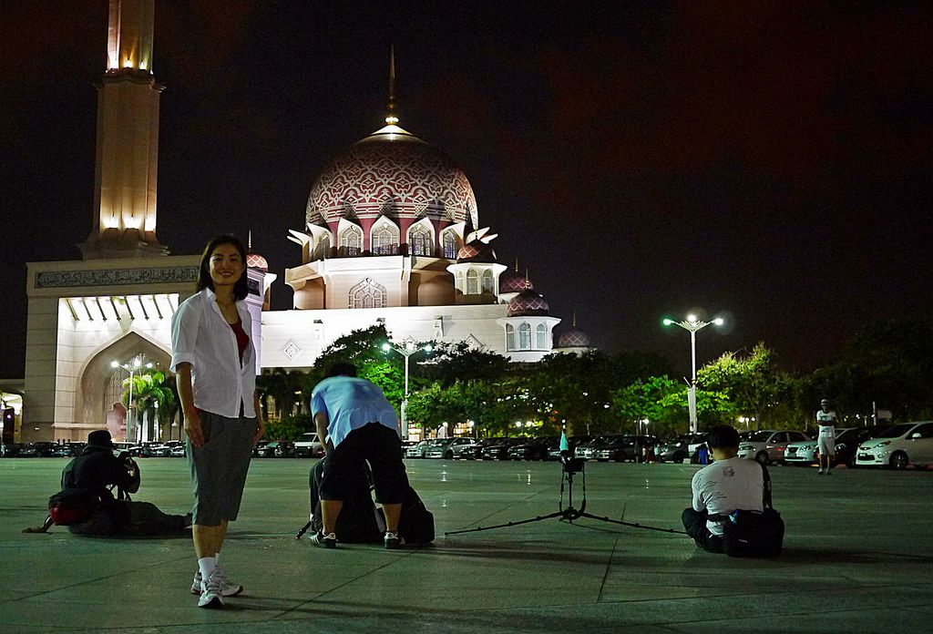 ยามค่ำคืนมีมือกล้องสมัครเล่นมาถ่ายรูปแสงสีของมัสยิดเต็มลานกว้างเลยค่ะ