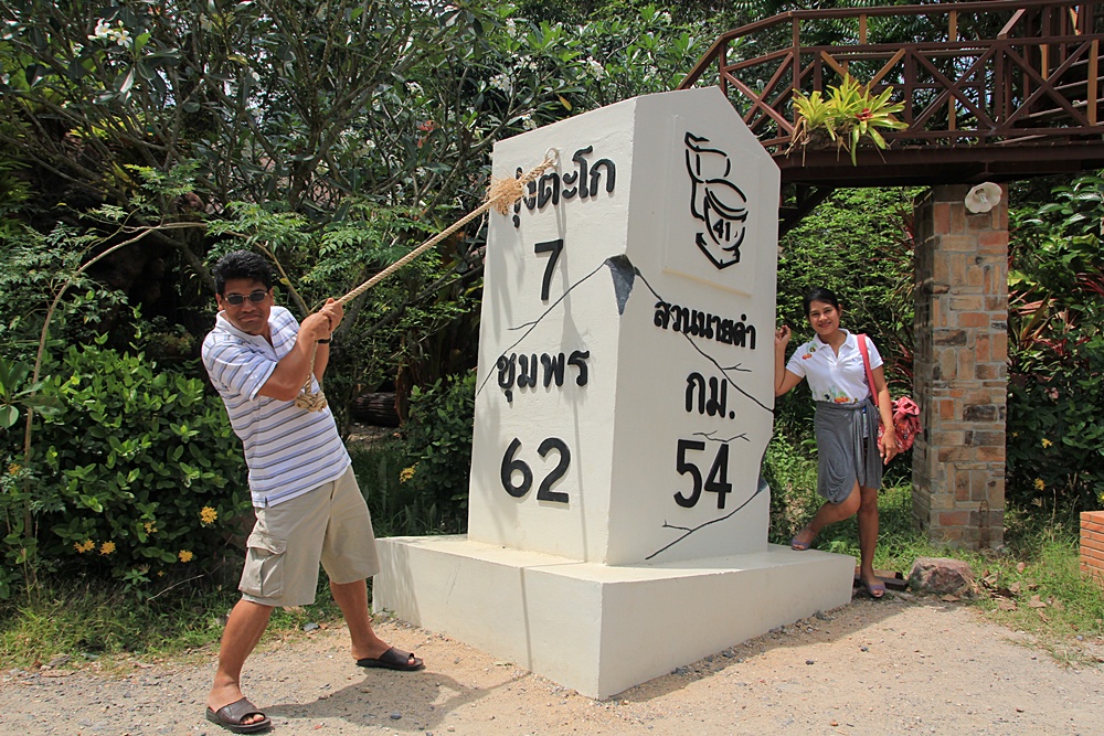 ออกจากเขื่อนรัชประภาเราก็เดินทางกลับผ่านจ.ชุมพรก็เลยแวะที่สวนนายดำหาส้มโชกุนกิน และไปดูส้วมทาซาน