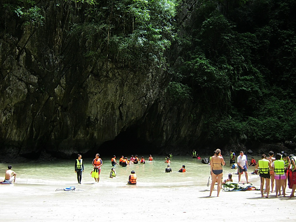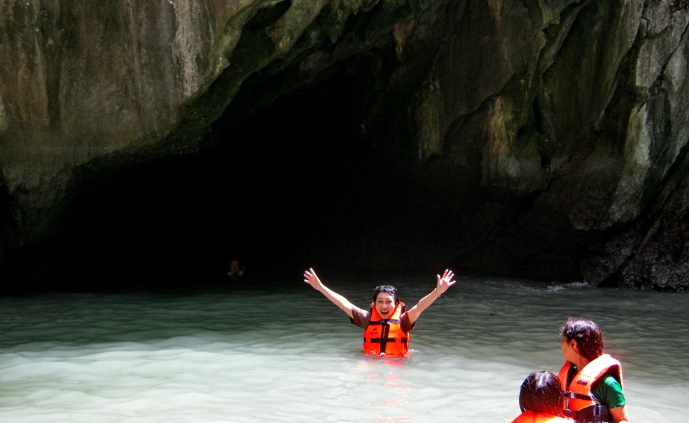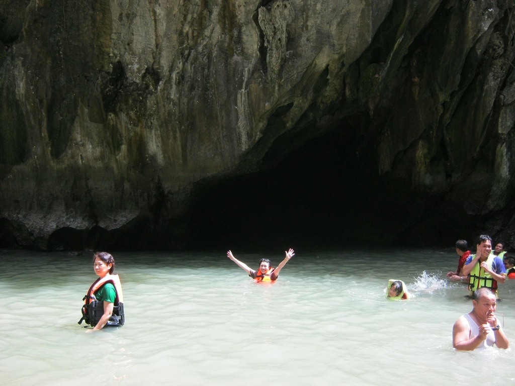 เราต้องว่ายน้ำเกาะกันเป็นหางจากด้านนอก มุดถ้ำเข้ามา หากน้ำขึ้น มือเอื้มถึงเพดานถ้ำ จะมืดและน้ำเย็นเฉียบ