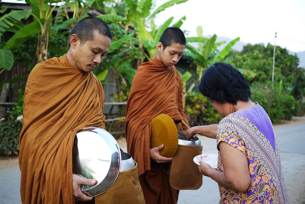 พระที่วัดสันนาเม็งก็นำสามเณรน้อยออกบิณฑบาตเหมือนกัน