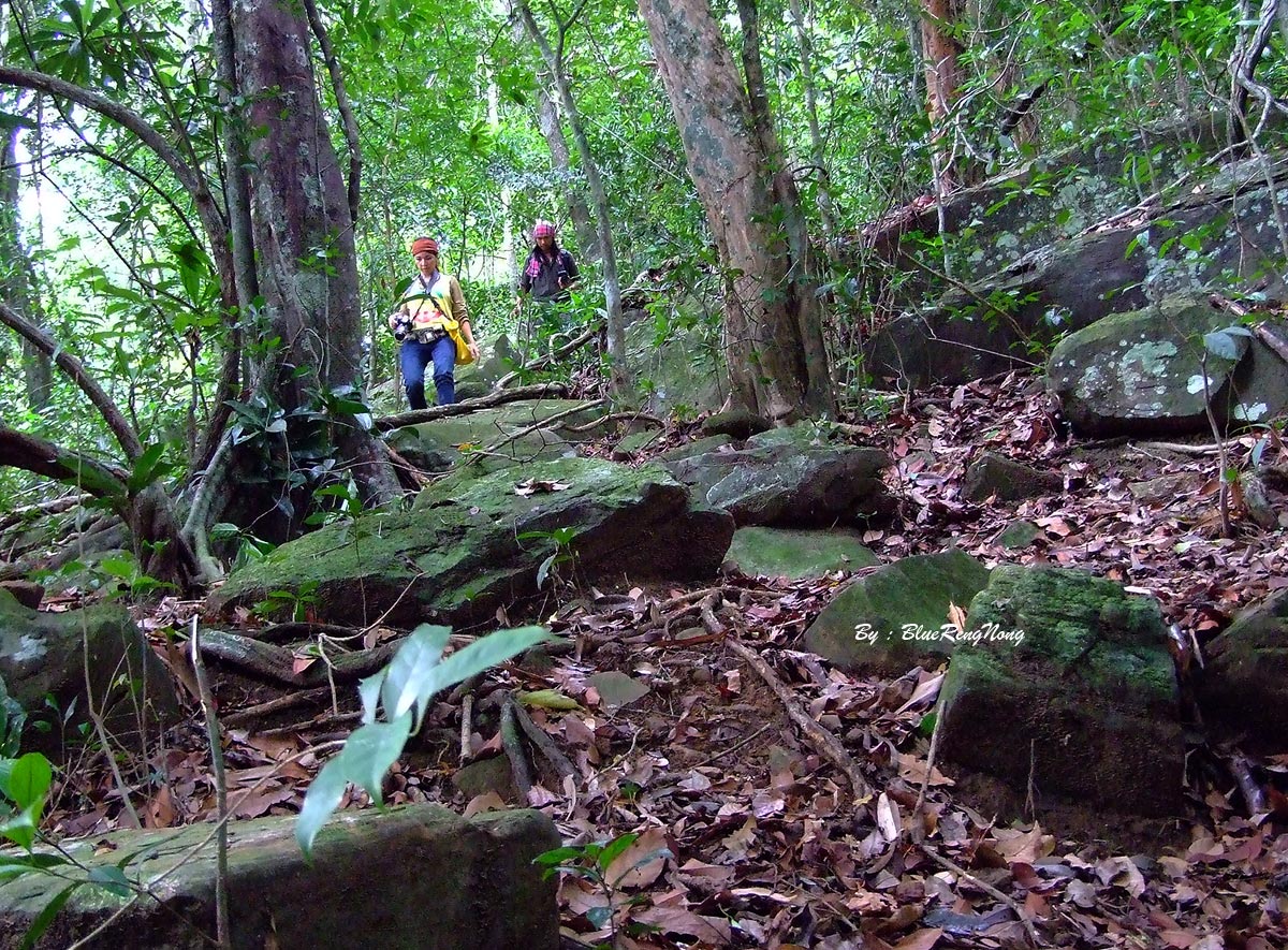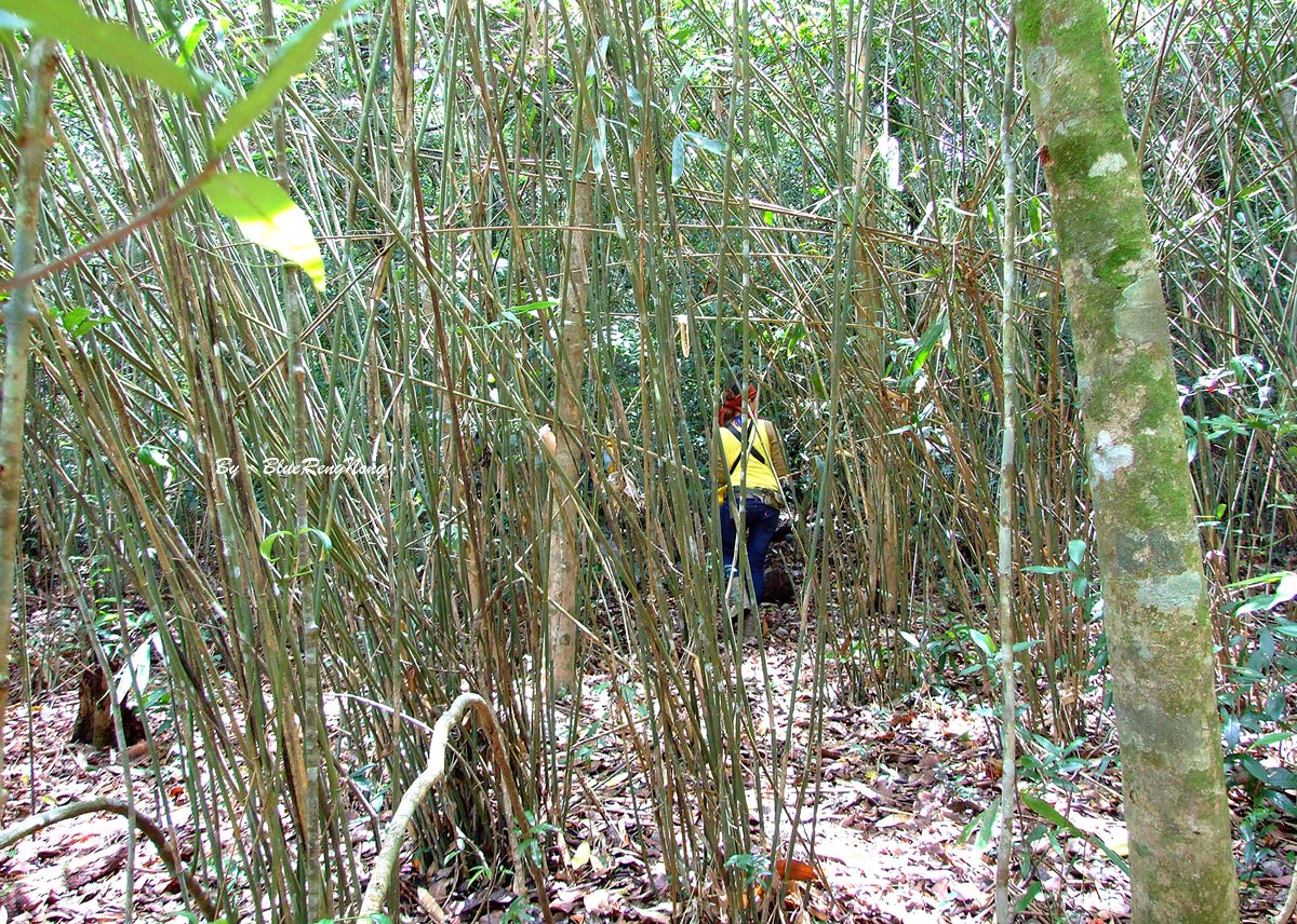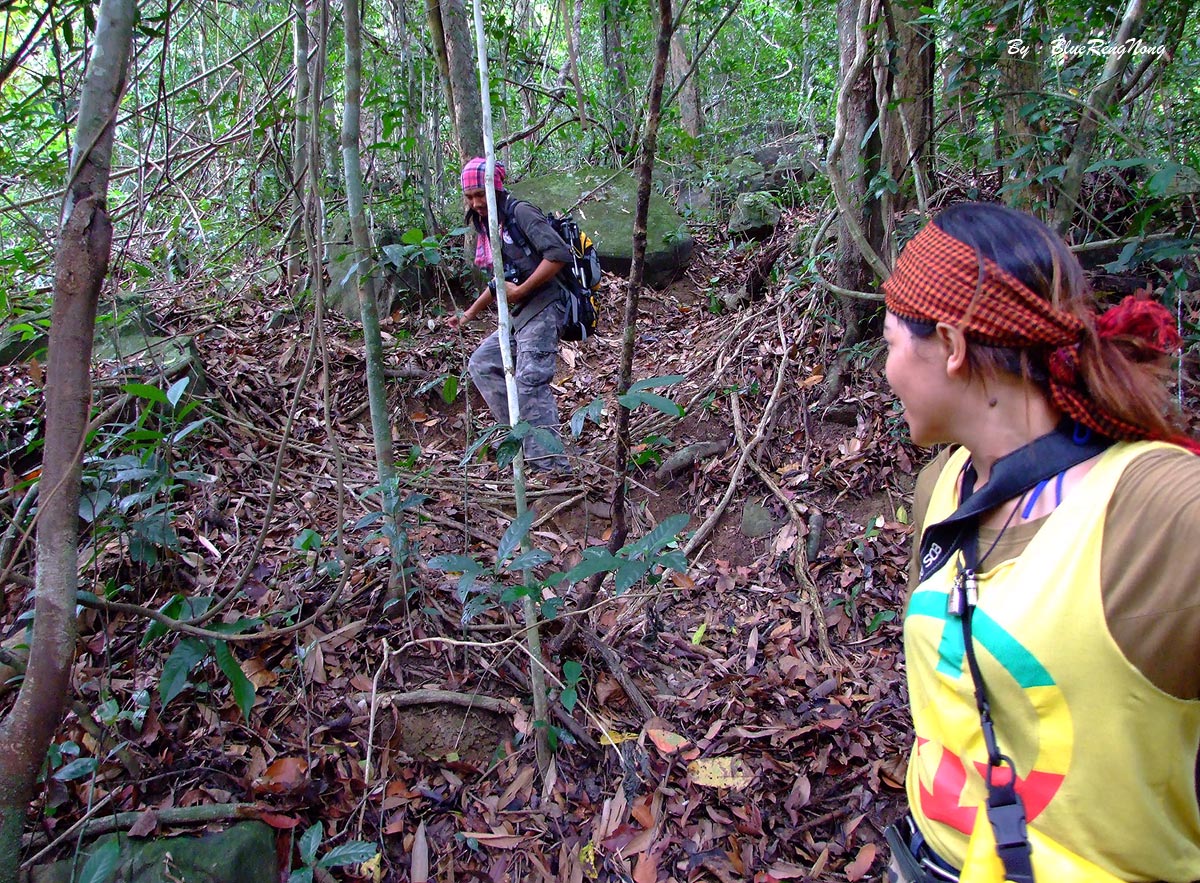และหลังจากนั้นเราก็มุดๆตามพี่เจ้าหน้าที่ไป ป่าโล่งบ้างทึบบ้างสลับกันไป และได้สังเกตเห็นพี่เจ้าหน้าที่แกเดินไปเกาหัวไปแกรกๆ