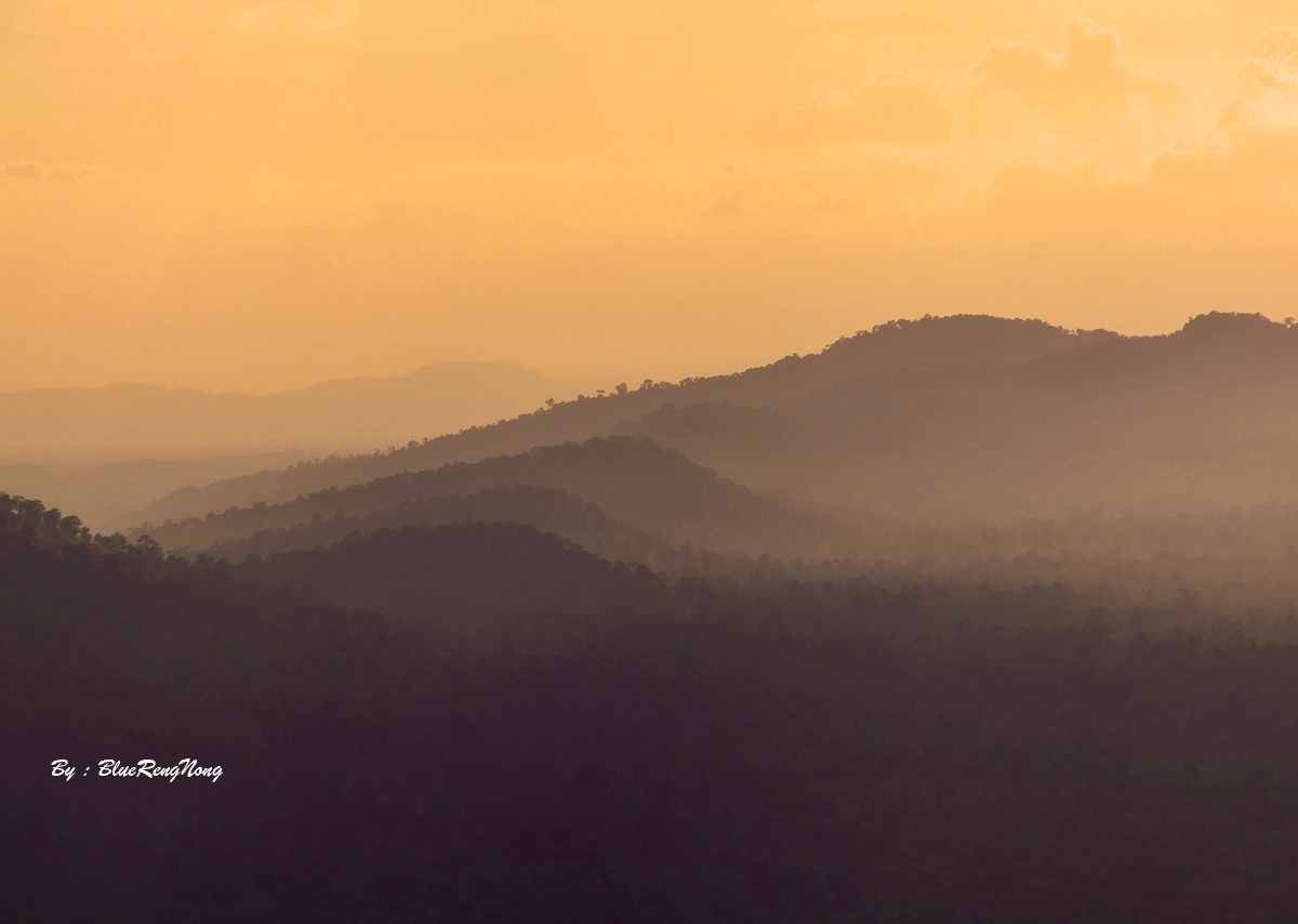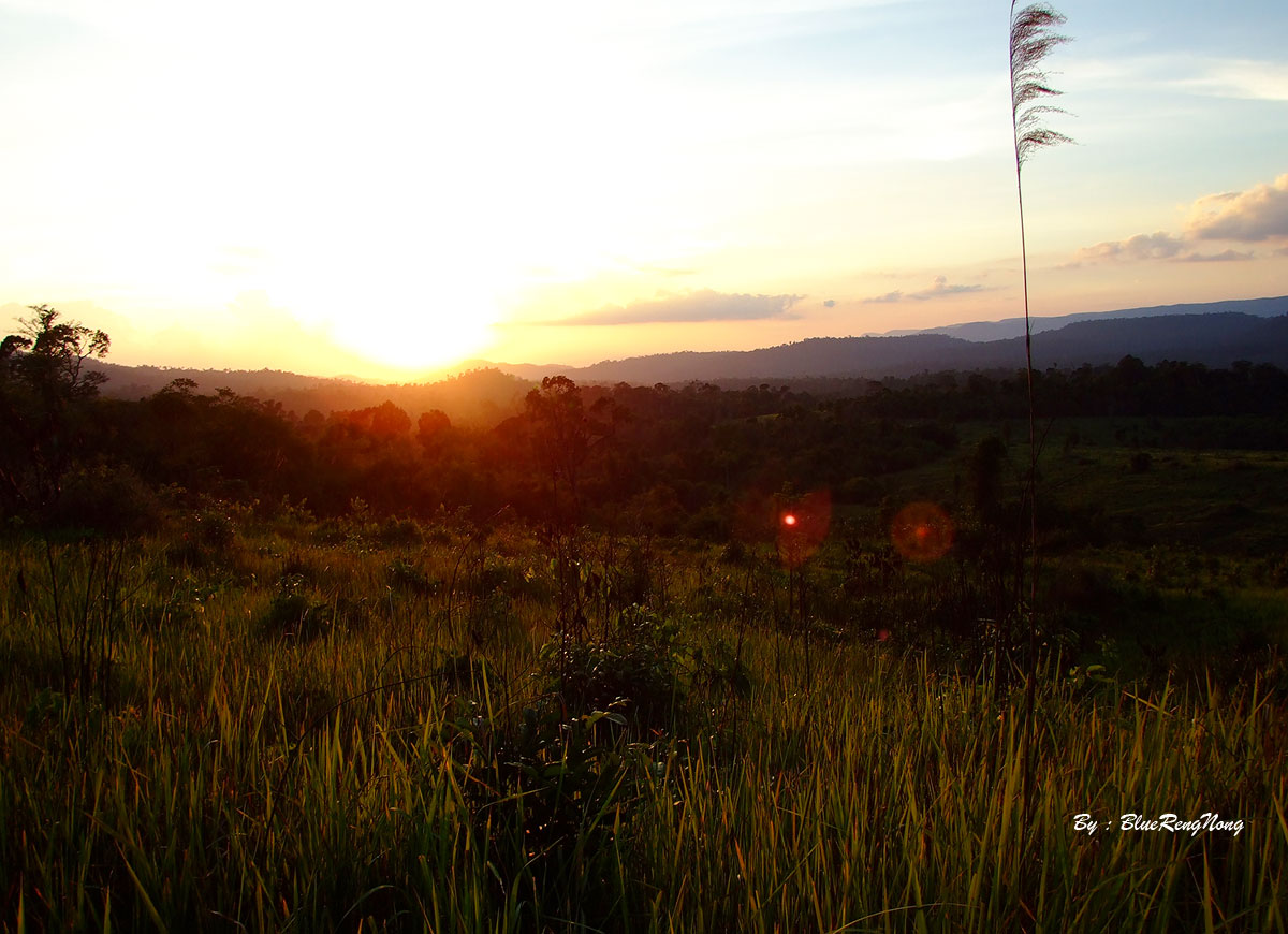 เราเดินจ้ำอ้าวมาถึงทุ่งหญ้าก่อนพระอาทิตย์ลาลับทิวเขาพอดี...เวลาเหมาะเลยสำหรับการชมกระทิงฝูงออกเล็มหญ้า