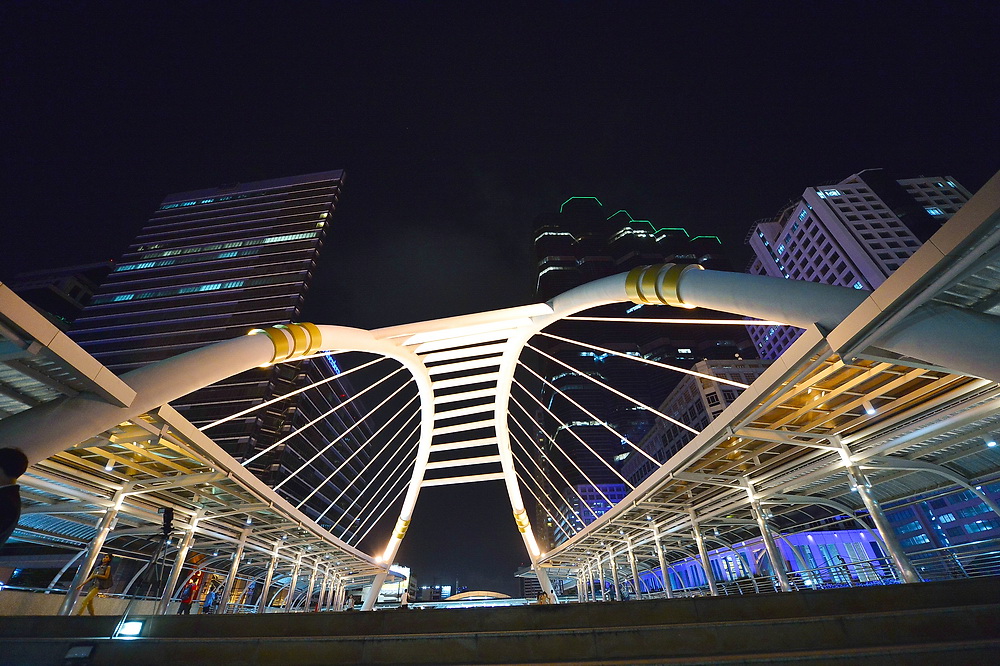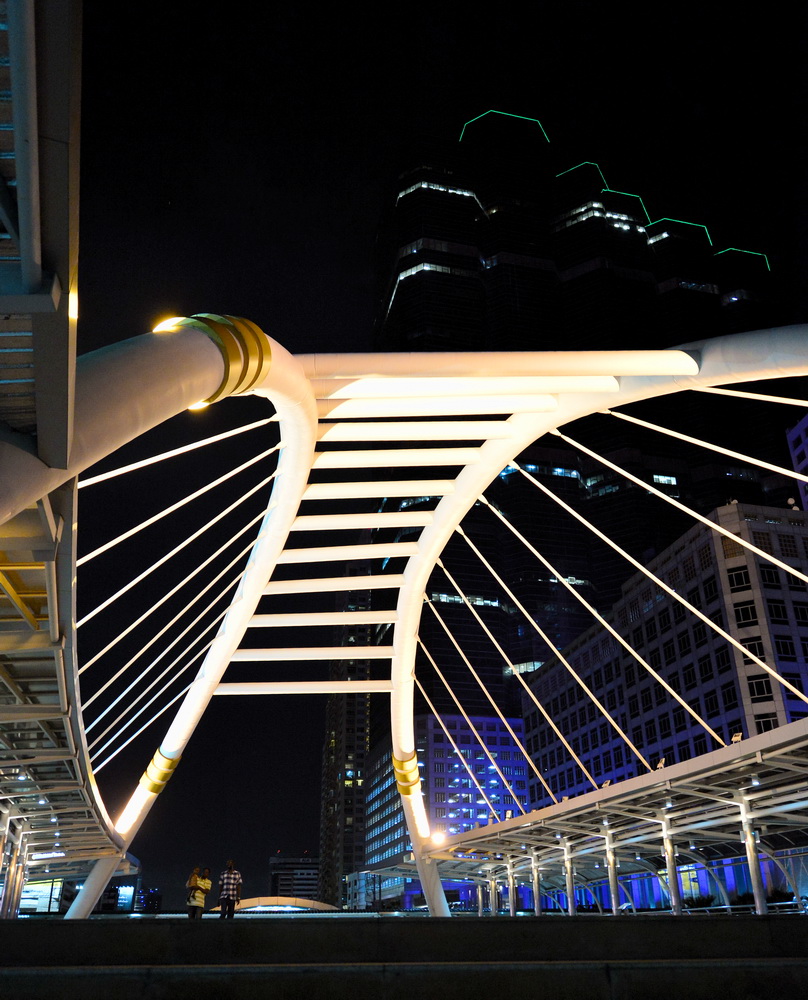 เราขึ้น BTS กลับกัน คุณแมว อยากจะย้อนกลับไปถ่ายภาพทางเดินเชื่อม BTS และ BKK BRT บรรยากาศกลางคืนดูบ้าง เสียดายที่เราไม่ได้เอาขาตั้งกล้องไปด้วย โอกาสหน้าก็แล้วกัน