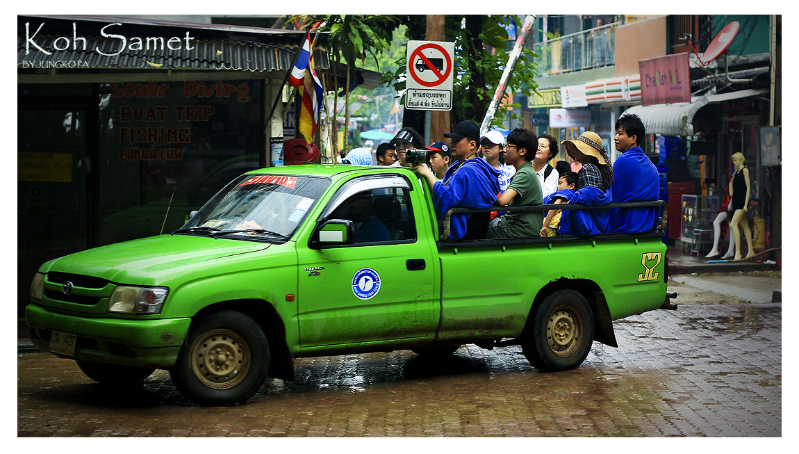 มาถึงเกาะแล้วครับ ต่อด้วยรถสองแถวกันเลย จริงๆ ไปไม่ไกลเท่าไหร่เดินก็ได้ แต่นั่งอุดหนุน ชุมชนดีกว่า