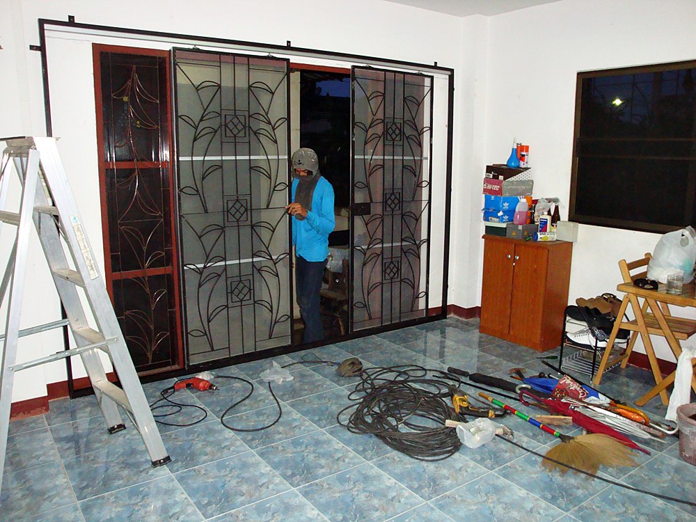 สวัสดียามค่ำครับ ช่างมาติดประตูมุ้งลวด ตั้งแต่ก่อนเที่ยง ป่านนี้ยังไม่เสร็จเลยครับ