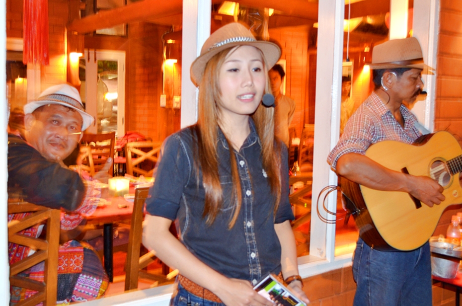 น้า...น้า...พี่ชุมพร เจ้าของร้าน...บอกให้นักร้องมาร้องเพลงที่โต๊ะเป้นกรณีพิเศษ...โดยร้องเพลงที่พี่ชุมพรเขาแต่งเองด้วยนะน้านะ.........งุงิงุงิ
