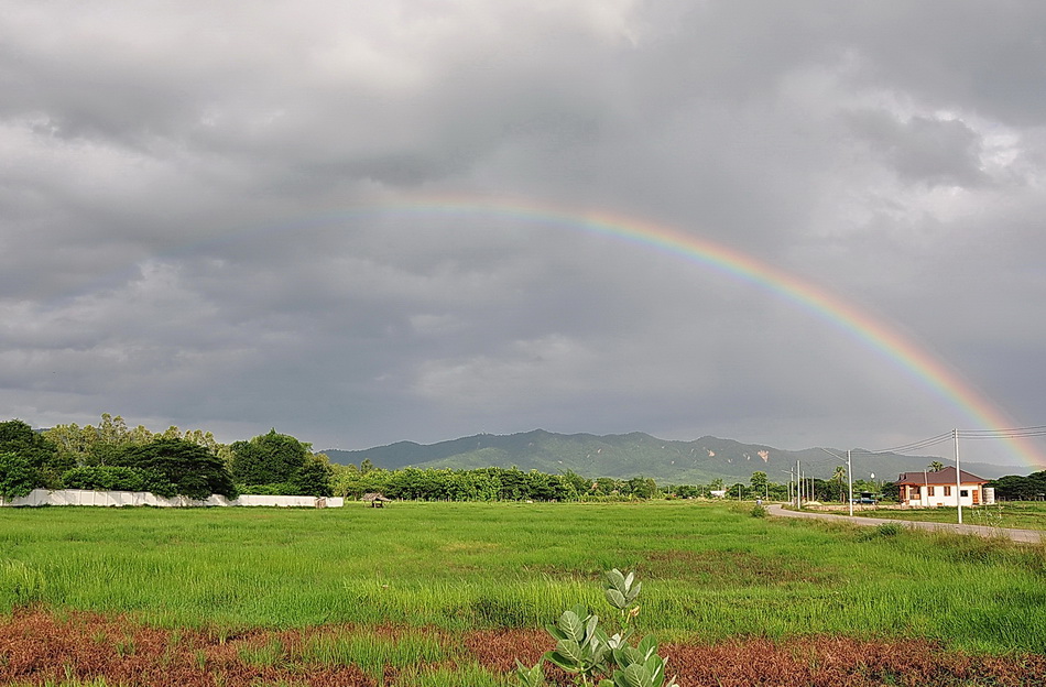 กลับจากทำงานกำลังจะถึงบ้านอยู่แล้วเชียว เห็นรุ้งสีสดใสเลยจอดรถเก็บภาพมาร่วมแจมอีก 1 ภาพครับ