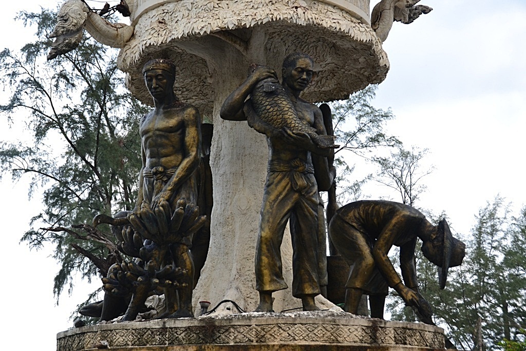 แสดงรูปปั้นอาชีพชาวบ้านดั้งเดิม มีเกษตรกรรม ทำแร่ ประมง