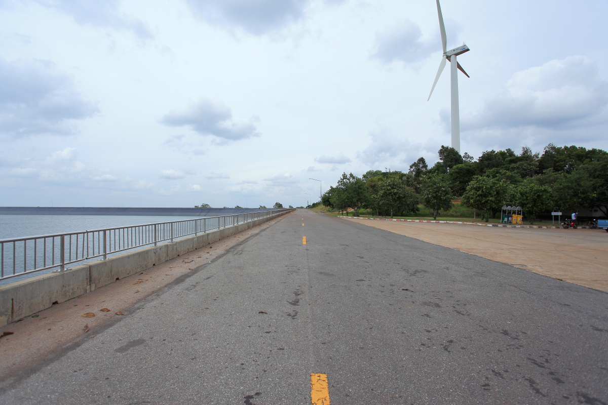 ระหว่างเดินไปยังอีกมุมของอ่างเก็บน้ำ เห็นรถบรรทุก อยากเปรียบเทียบขนาดกับกังหันลมดู ครับ