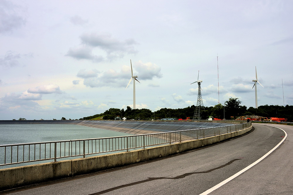 อ่างเก็บน้ำเพื่อปล่อยลงไปปั่นกระแสไฟฟ้า และ กังหันลมปั่นไฟฟ้า