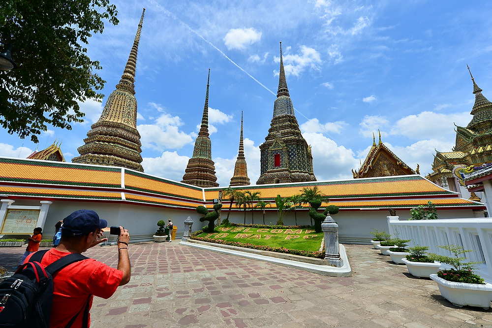 เราเดินกันมาที่วัดโพธิ์กันครับ วันนี้อากาศดี ฟ้าใสแดดแรง แถมร้อนมากๆด้วยอะครับ วันนี้นักท่องเที่ยวทั้งไทยและเทศมาเที่ยวกันเยอะครับ