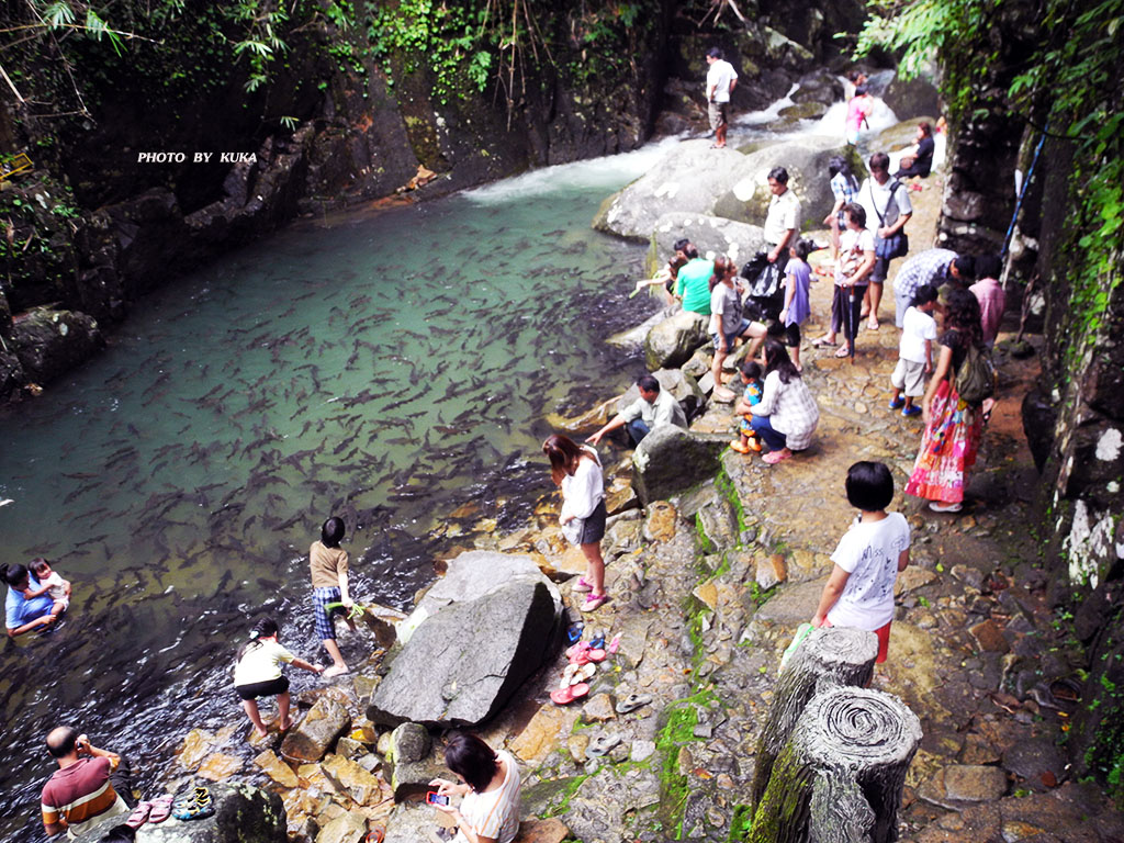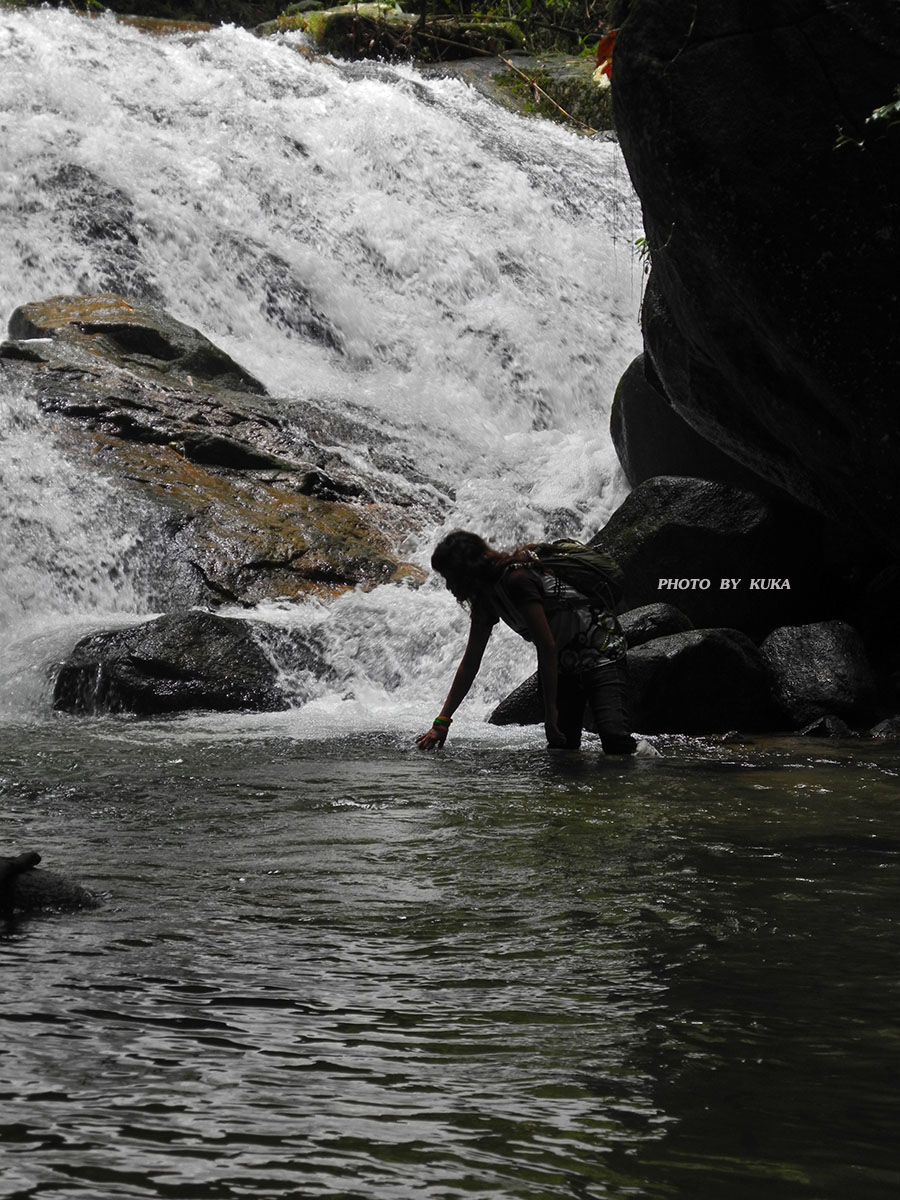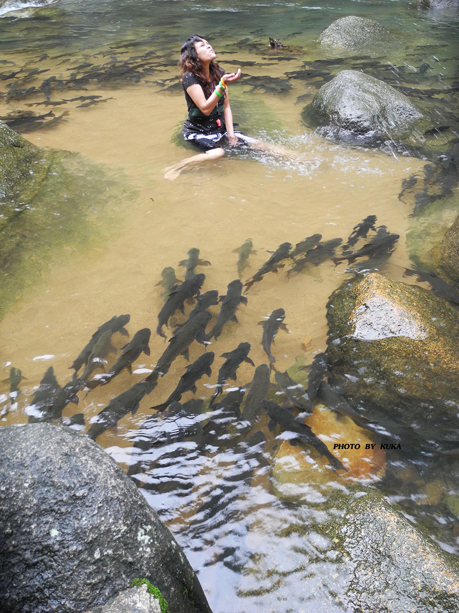 ระหว่างทางเดินไปน้ำตกผ่านลำธารที่เต็มไปด้วย..ปลาพลวง..บางคนกำลังให้ปลากินถั่วฝักยาว..เพิ่งจะรู้ว่าปลาก็กินถั่ว..