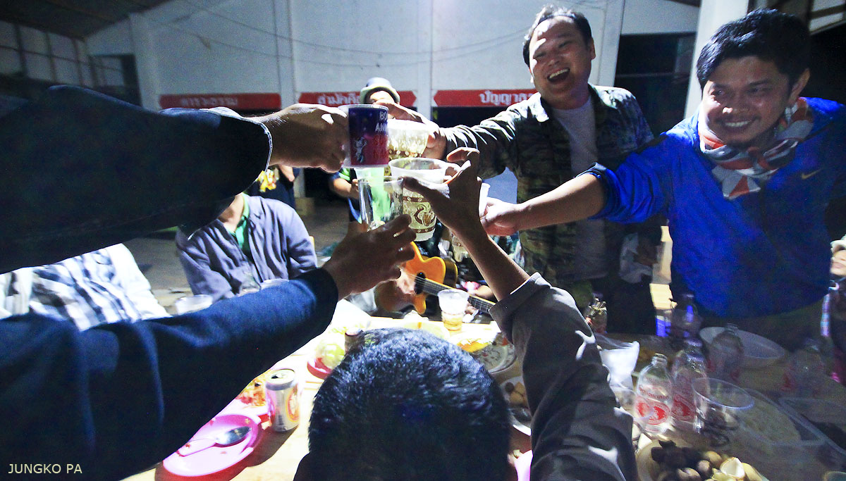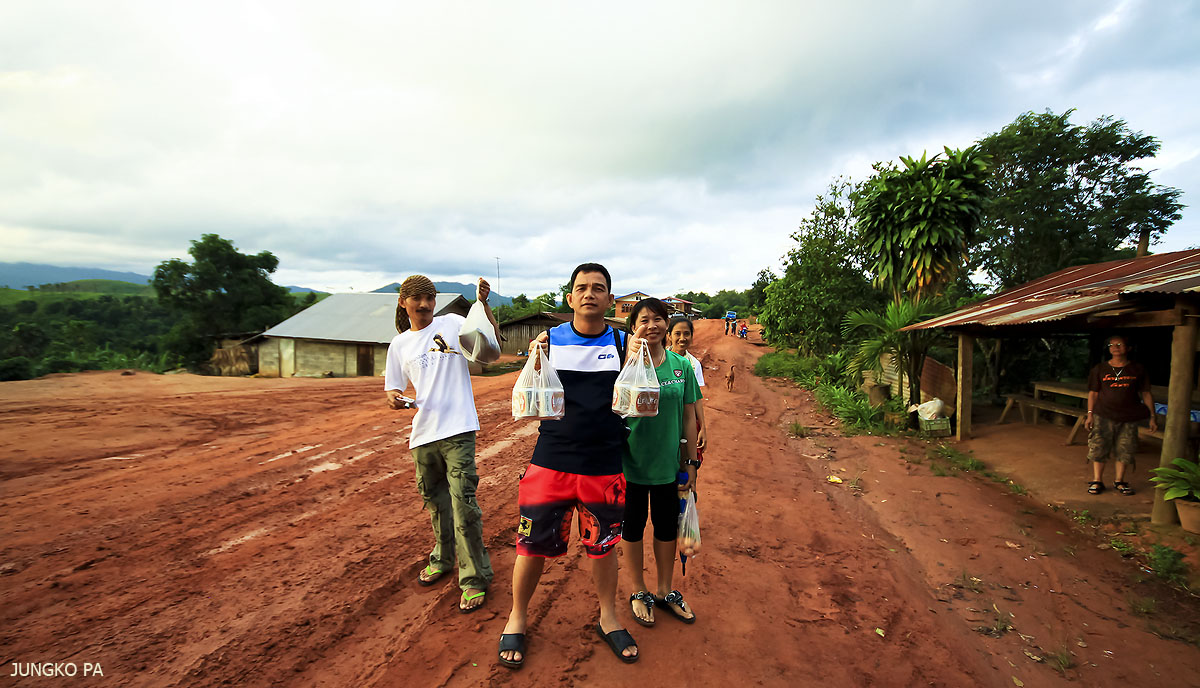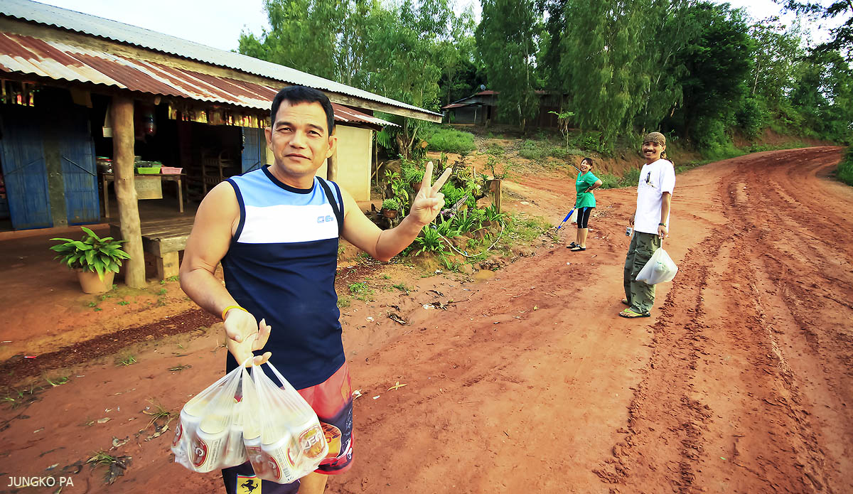 ยังไม่ทันเข้าเขตหมู่บ้านเลย เจอนักท่องเที่ยวกลุ่มนี้ขนสัมภาระมา เป็นเป้าหมายของเราเหมือนกัน แหล่มเลย รอดตายแล้วคืนนี้ ฮาๆๆ