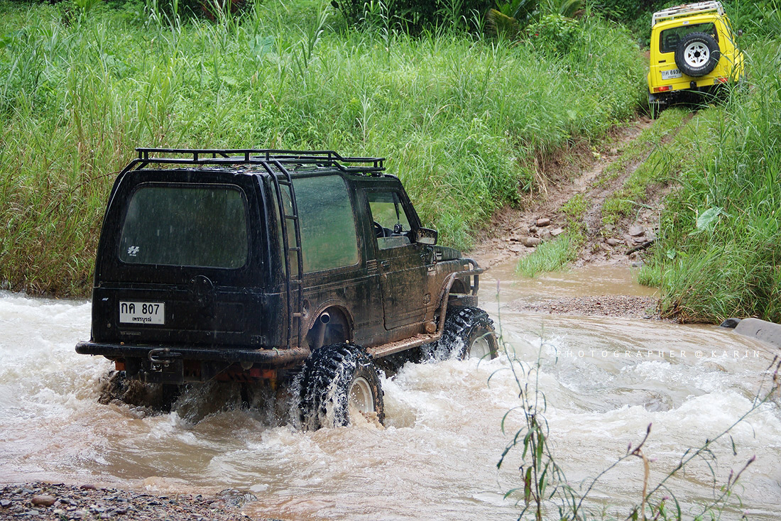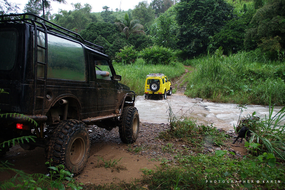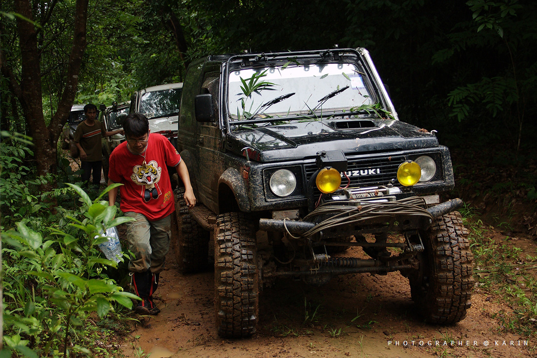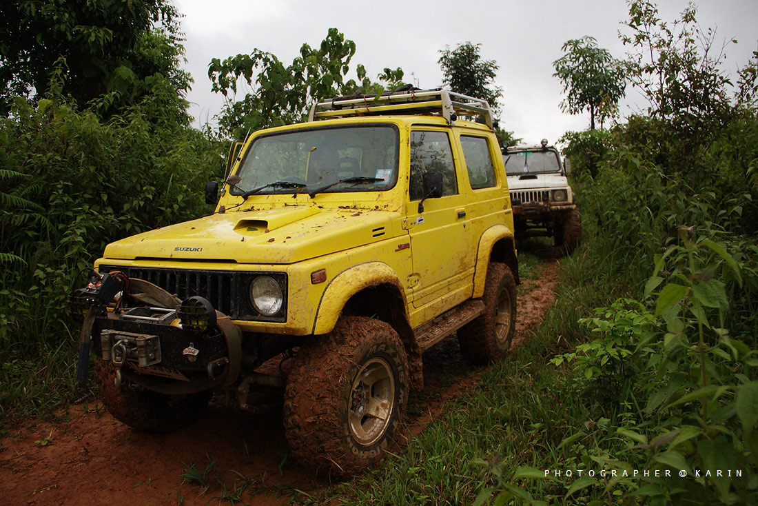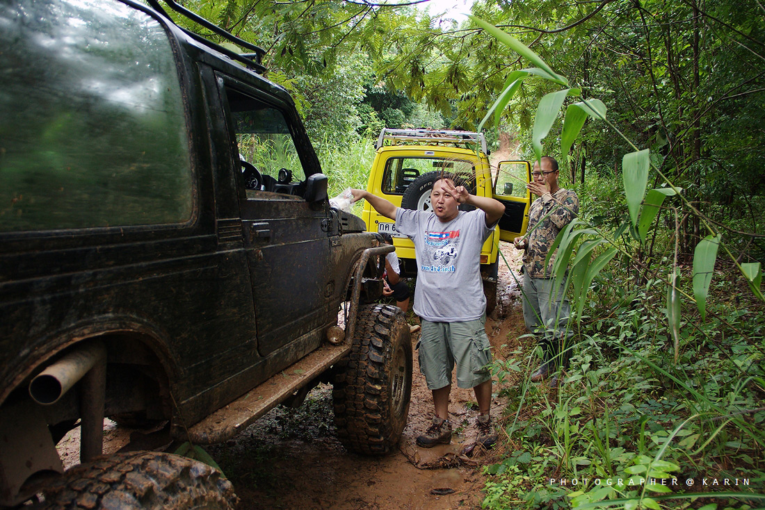คันที่ 1 ซูซุกิ จิมนี่ สีเหลือง ( เก่ง ลำน้ำเข็ก ) คันนี้ปั่นจนความร้อนขึ้นตลอดทาง ดีที่หัวทิ่มลงเหวไป 1 รอบ เลยรดความซ่าลงมาหน่อย พอออกจากป่ามาได้ งานนี้รวนทั้งคันไปเลย