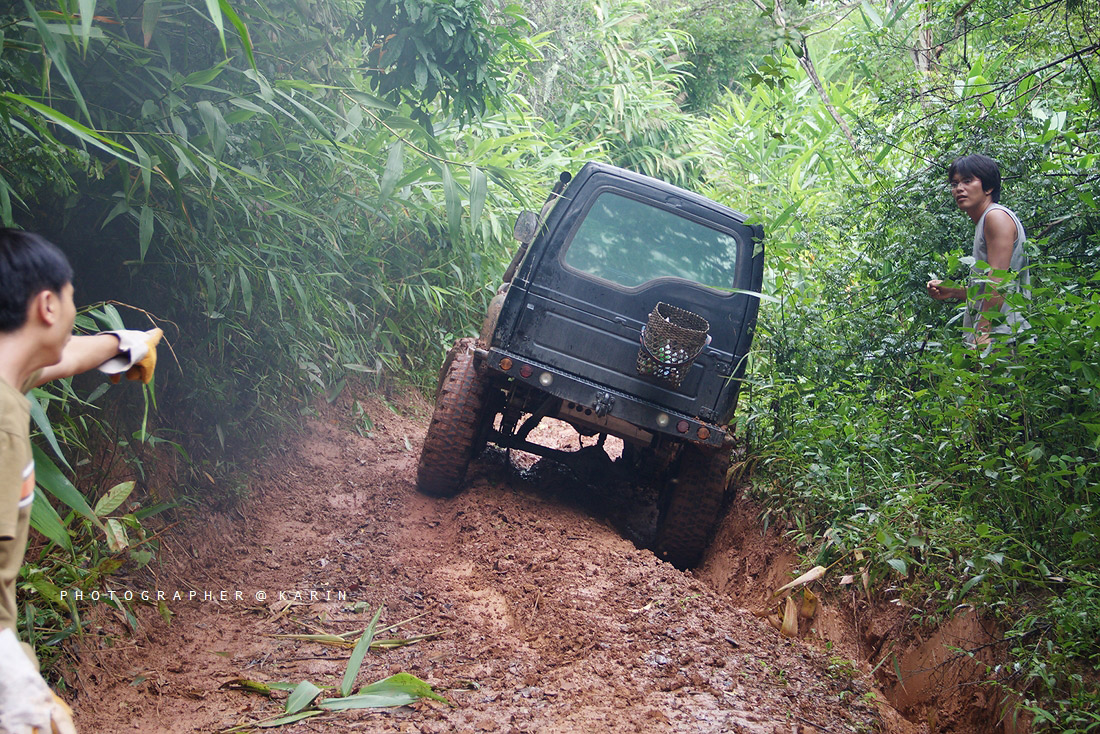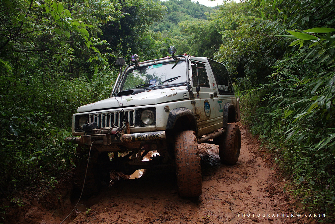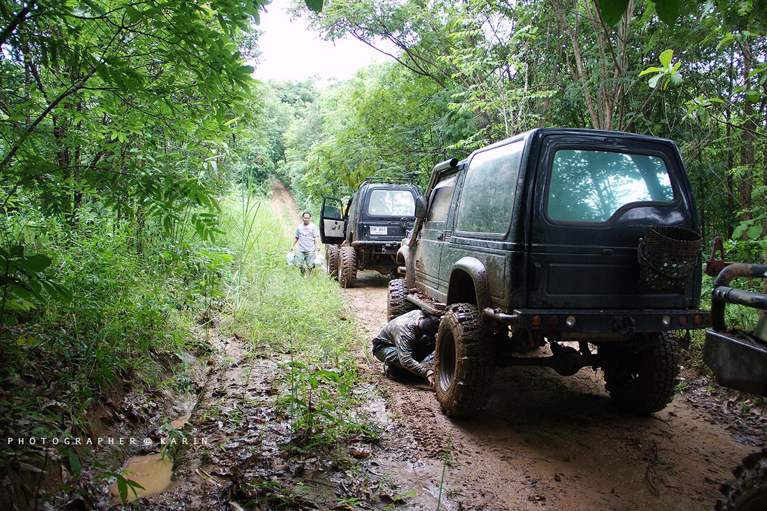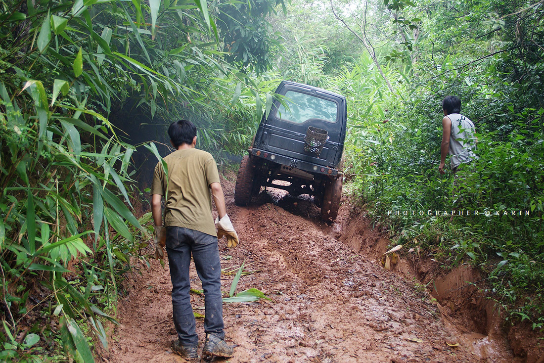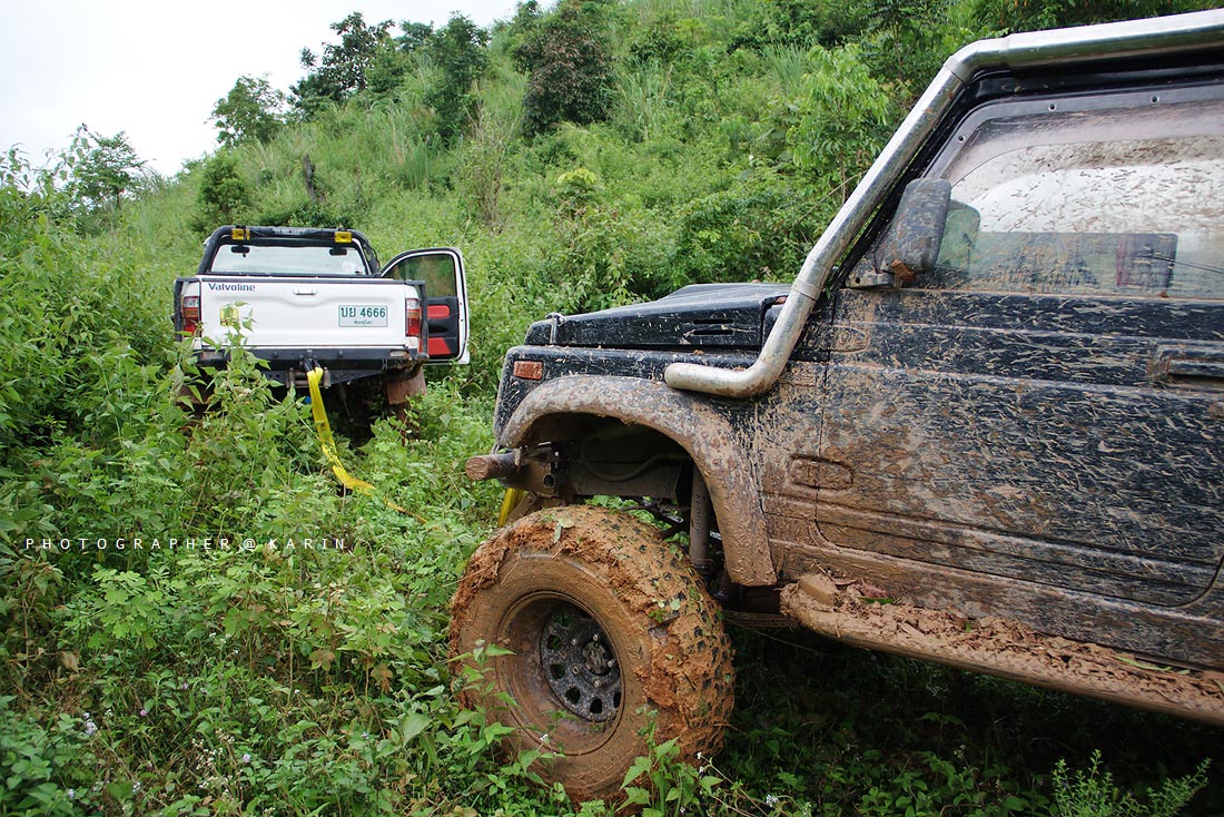 เมื่อเราพักกันเรียบร้อย รถอีเบี้ยนสีดำงานนี้ต้องถูกลากตั้งแต่บัดนี้เป็นต้นไป ทางด้านหน้าเริ่มชันขึ้นเรื่อย แถมมีดินหนักหมูมาดักอีก เรียกได้ว่า จิมนี่คันเหลืองปั่นจนเครื่องฮิทกันไปเลย ยังไงก็ต้องปั่นเพราะเส้นทางตรงนี้หาหลักวินส์ยากจริงๆ ส่วนผมก็ไม่ต้องพูดถึง ทั้งเทค ทั้งปั่น ปั่นจนควันขึ้นกันไปหลายรอบเลย กว่าจะผ่านแต่ละเนินไปได้