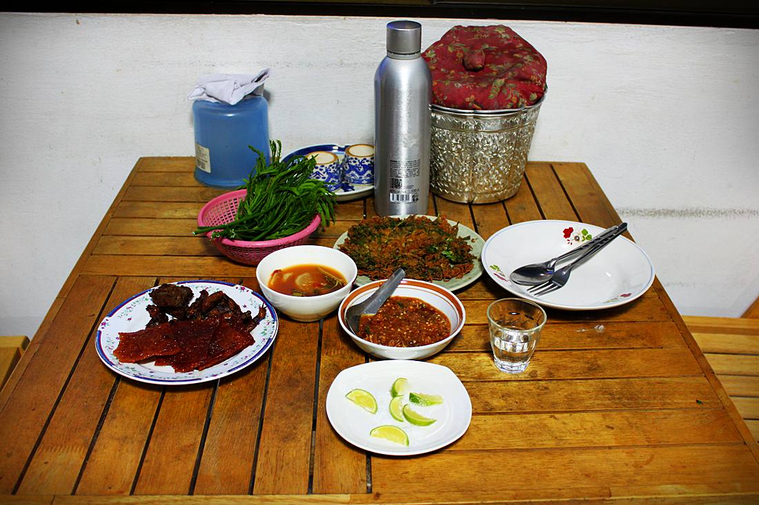 มาทานมื้อเย็นกันครับ ฤดูฝนแบบนี้ ยอดกระถินอ่อน ๆ จิ้มกับน้ำพริกกะปิ หมูแผ่นหวาน ๆ แกงส้มผักรวม ไข่ทอดชะอม
