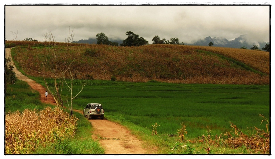 ขับรถเข้ามาครึ่งทาง ที่นี่ไม่เจอฝนเลย..เจอแต่แดดที่ร้อนมาก...ตอนแรกคิดว่าเจอฝนแน่ๆ..ทิวทัศน์สองข้างทางระหว่างทาง สดชื่นดี..